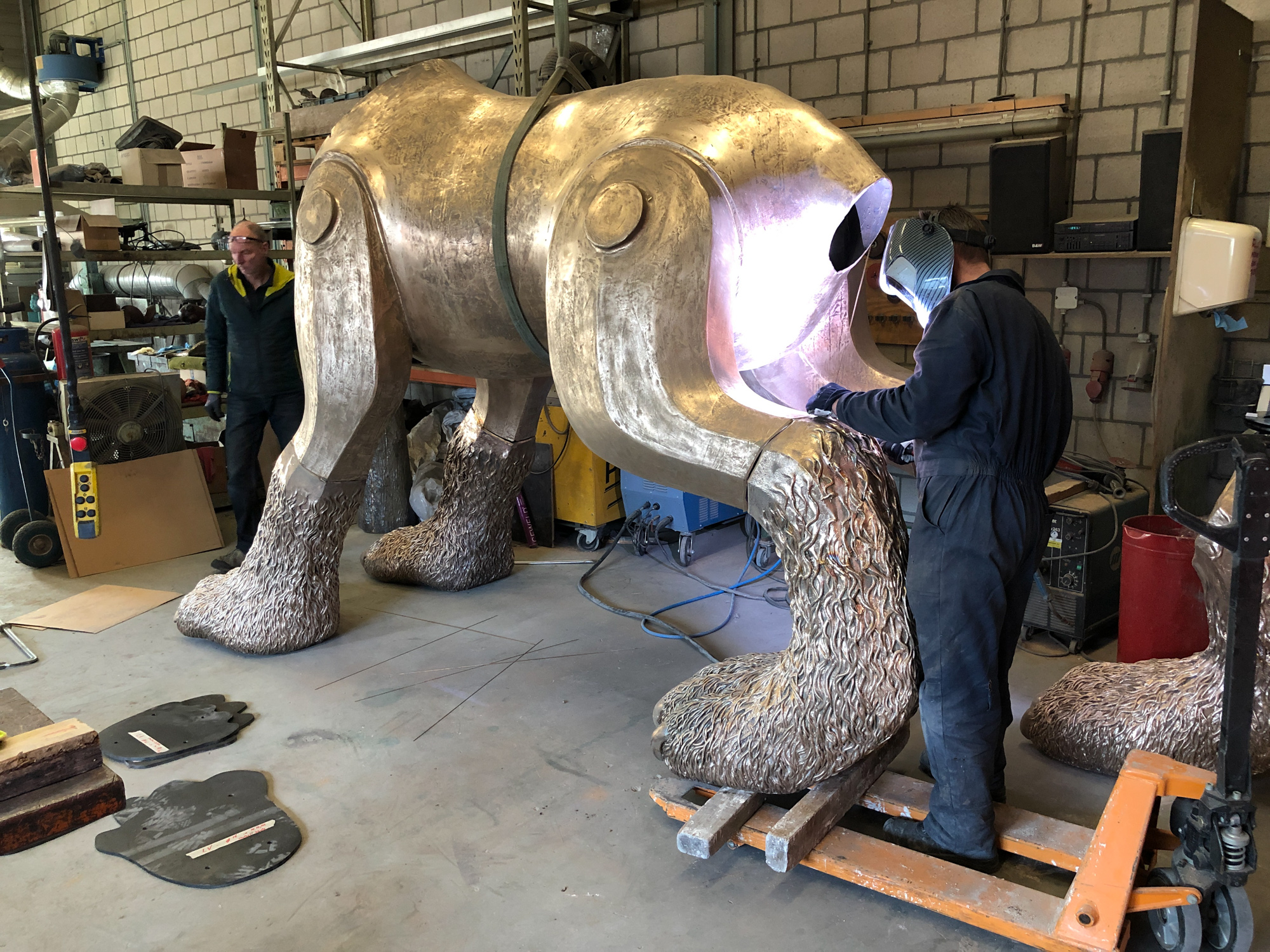 Hoplaaa in de poten….En vandaag was de dag die je wist dat zou komen, toch….Alles was netjes klaargezet, de haartjes gekamd, overhemd gestreken en de nagels geknipt. Tijd om wat poten te monteren….Nadat collega Keizer de afgelopen weken als volleerd hoefsmid de nagels had bijgepunt en de zaak had afgewerkt konden we vanmorgen met Noud en Alex de Wolf op hoogte brengen. Kan niet wachten tot we de kop d’rop zetten, maar die wordt as donderdag gegoten en dan nog even wat slijpwerk.. Awel binnenkort verder…