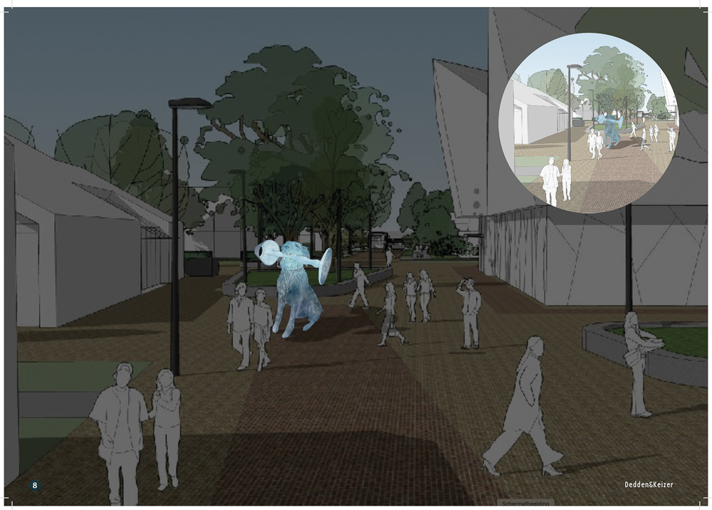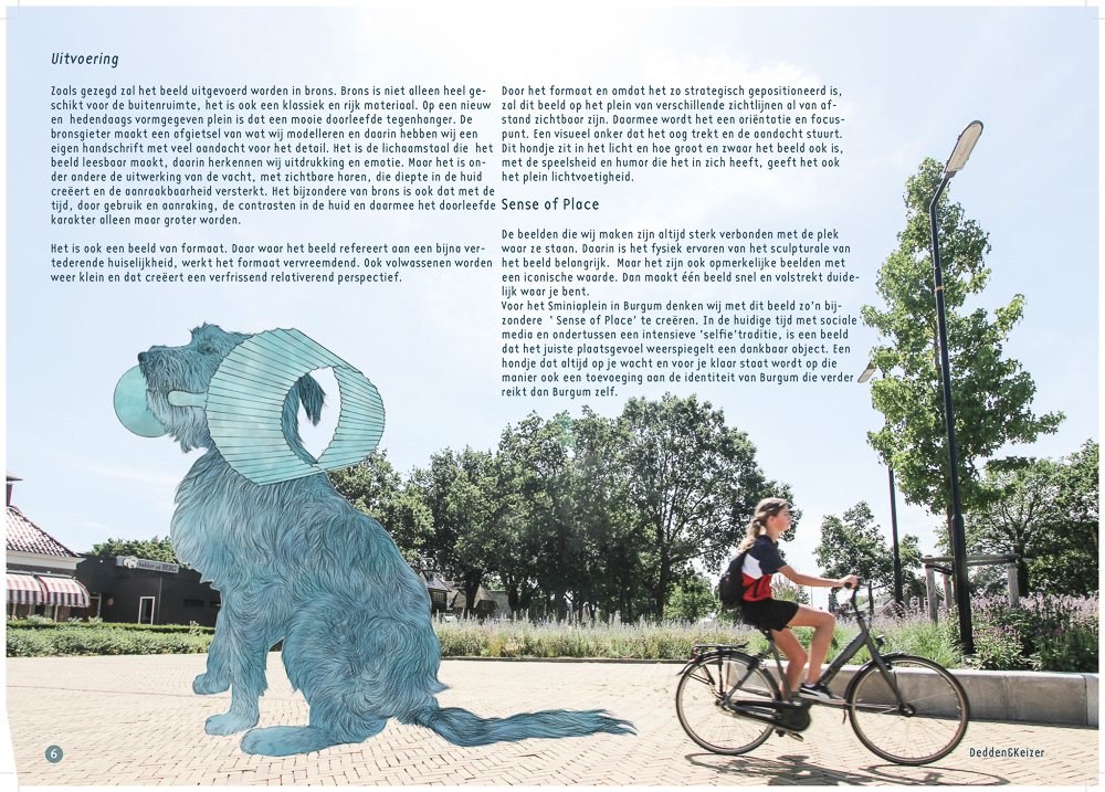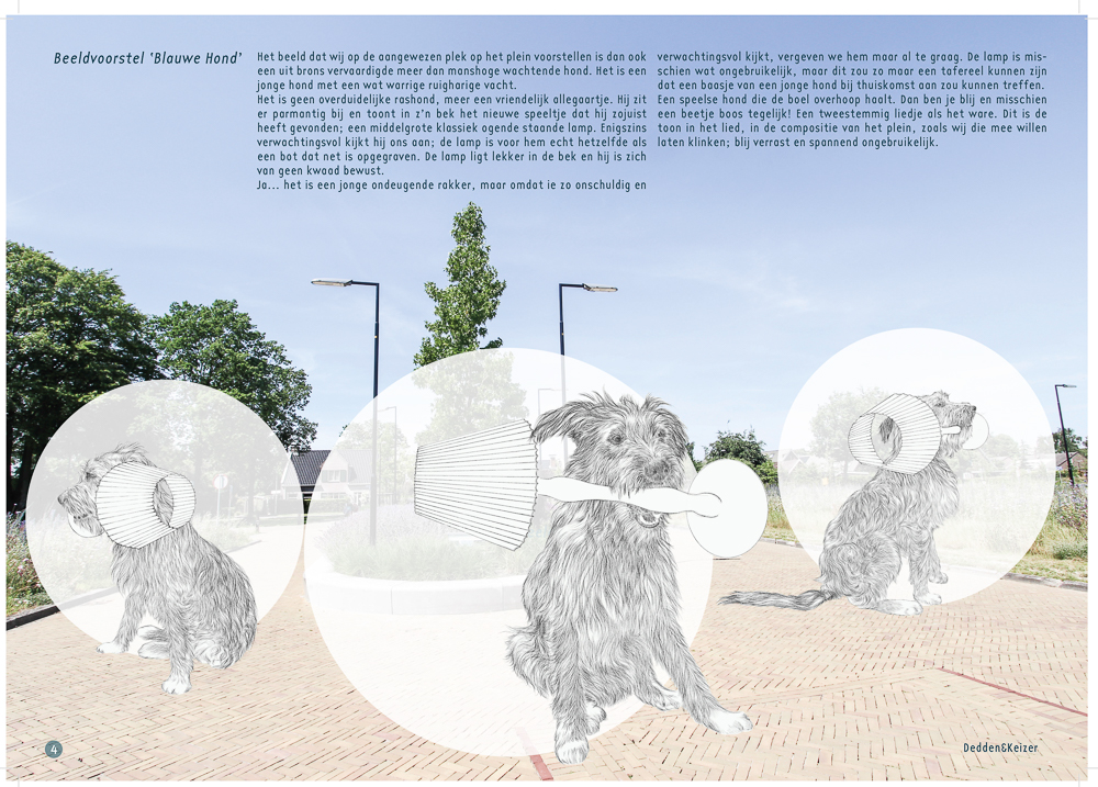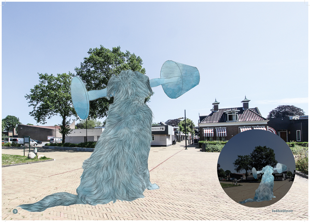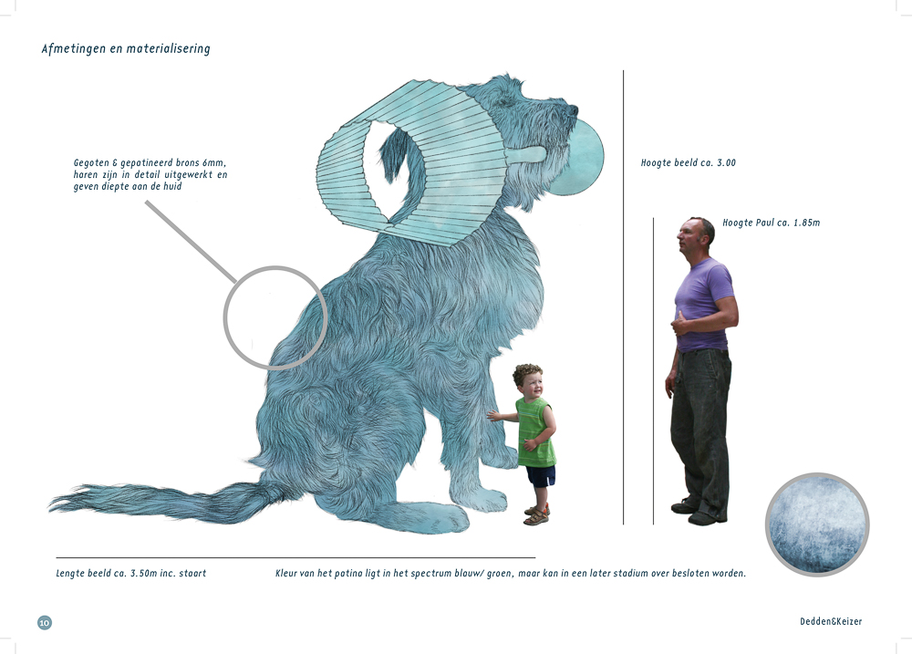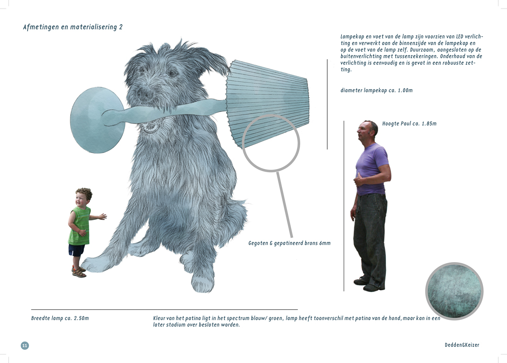 And now for something completely different…! Nadat ik jullie de afgelopen dagen natuurlijk helemaal sufgespammed heb met steeds maar weer diezelfde Canis Lupus, wordt het tijd voor iets anders… Ondertussen hebben we niet alleen met de neus in de gips en/of klei gezeten, maar zijn we nog aan het werk geweest voor het dorp Burgum in Friesland. Ons ontwerp is gekozen om uitgevoerd te worden voor het Sminiaplein, een nieuwe entree voor het winkelgebied van Burgum. Voor dit plein hebben we een forse bewoner bedacht, eigenlijk een nacht en dagwaker die er altijd is en altijd aan staat. Een Canis Hyacinthum met een schemerlamp in de bek, die het uiteraard ook doet en s’nachts het plein en fikkie verlicht. Gisteren hebben we nog een presentatie gedaan voor de dorpsraad en is het voorstel unaniem gekozen voor uitvoering. Geweldig om aan zo’n Big dog te mogen werken…. ( wordt vervolgd)
