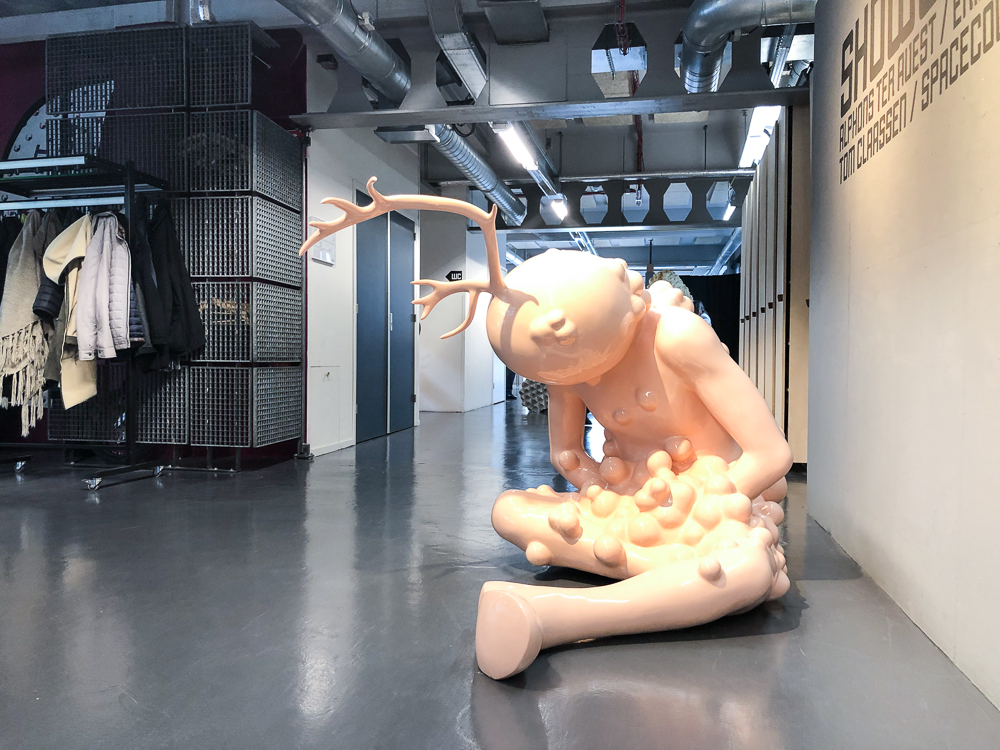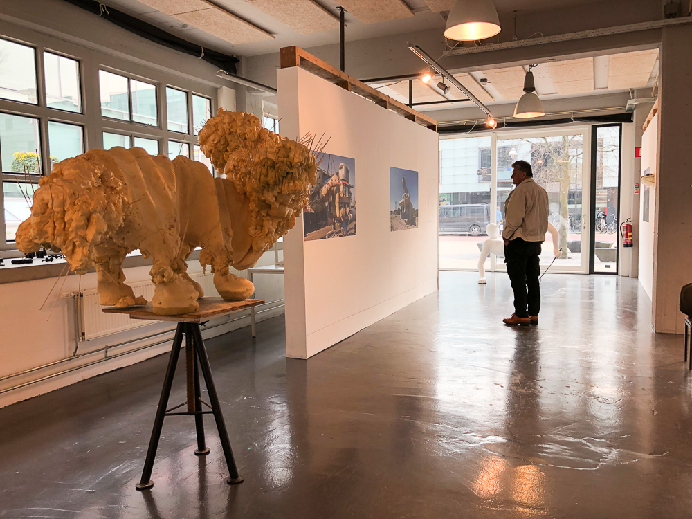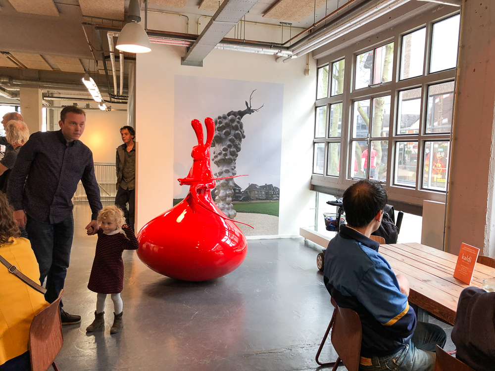 Ja ACEC Apeldoorn dus. Alleen wordt er geen apparaat meer geproduceerd, maar des te meer spanning opgeroepen. In plaats van een werkplaats voor handige huishoudelijke apparatuur, vormt de begane grond op dit moment meer een ausstallung voor kunst in het Publieke Domein, met hoofdletters dan. Initiator Jasper van der Graaf van ACEC heeft zoals hij het zelf formuleert een Showcase neer willen zetten van kunst in de openbare ruimte en hoe dat dan in zijn werk gaat, niet alleen bedoeld om voor de bezoeker bijna een ‘ day in the field ‘ op te roepen, maar om juist in Apeldoorn weer een zwengel te geven aan de rol van kunst in het publieke domein. Daar was overigens de afgelopen 10 jaar enigszins de klad ingekomen. Niet gek overigens, want de afgelopen 10 jaar is in half Nederland de rol van kunst in de openbare ruimte tot een soort van marginaal teruggedrongen, dus ik zeg Chapeaux…! Goed om te merken dat er weer aan paarden en karren wordt gesleurd. Anyway, dat gezegd hebbende zul je zelf even een kijkje moeten nemen op de begane grond van het ACEC gebouw, want ik denk dat menig museum trots zou mogen zijn op zo’n chique tentoonstelling of showcase. Samen met de collega’s Tom Claassen, Erik Buijs en Alphons ter Avest staat er wel even een serieus mooie showroom vol met publiek snoepgoed. Enjoy….