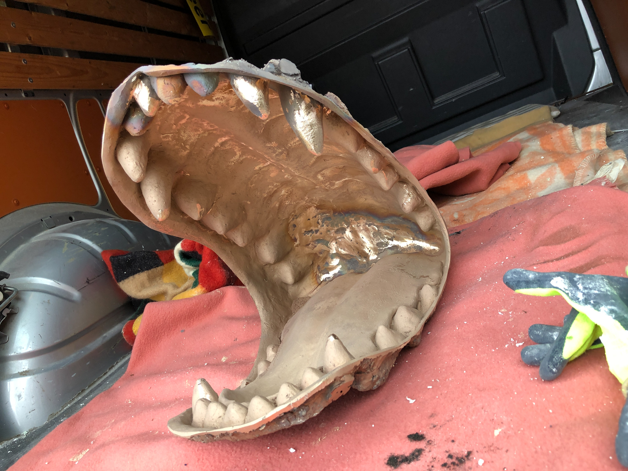 Nadat een flinke tijd geleden de ‘Moments of Destruction’ al tot een brute uitvoering waren gekomen, zo december 2019. Hebben we nog even intens geleden onder een after effect van de ontmanteling van de wolf en wel een totale implosie van van de wolvenkop, wat er in resulteerde dat we die voor de gezelligheid opnieuw konden opzetten en dat was dus een fijne kerst voor de Familie Spacecowboys en aanhang. Het was nu wel duidelijk waar het woord Dog Days niet voor was uitgevonden, niks niet op de luie mat liggen en de hele dag in het mandje. Neinnn…! half januari diende er weer een nieuw model aangeleverd te worden. Kleimeister Keizer kon weer aan de slag met het uitkammen van de hoofdharen. Ondertussen mocht ik mezelf bezig houden met het alvast opzetten van een nieuw model voor de Museumpassage in Apeldoorn, waarvoor we helaas op dit moment publicitair geband zijn en nog geen snippertje beeldmateriaal kunnen publiceren, hoewel we natuurlijk niemand kunnen verbieden een kijkje in de werkplaats te nemen…. Maar goed dat is voor later weer….