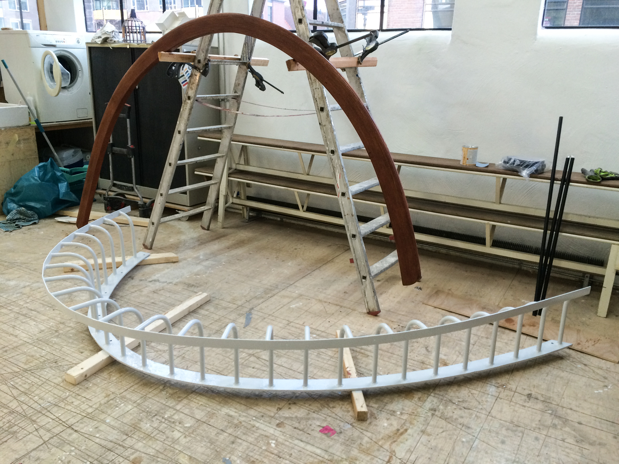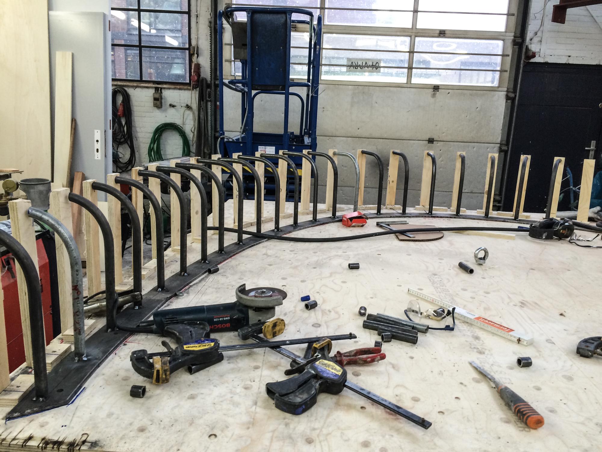 Juist vrienden…….Tijd om de puntjes op de é te zetten en wel de puntjes en leftovers van LucyGLXY. En dat waren natuurlijk de puntjes die nog wat lagen weg te stoffen in een verloren hoekje. Maar goed na het eerder behaalde succes van vorige week kon dit niet langer blijven hangen en werd het tijd om nog een stukje hardware uit te voeren, waaronder een piekfijne balustrade om te voorkomen dat straks al die carnavalsgasten over het dak donderen in benevelde conditie. En ook lag er nog een stukje aankleed en interieurwerk niet met kurk maar met vilt en dan niet zomaar uitgestrakt schaap, NeeeeN!.. Al in een eerdere post maakten we melding van een hele fijne sponsor uit Denemarken de Fa Kvadrat, die Lucy steunt met fiks wat vierkante meters Cloud, zodat het nu lijkt alsof je een bos binnenkomt en onder het bladerdek mag uitslapen, Awel kijk zelf maar…. PS en zeker op 18 april tijdens LOS Festival zijn we open voor visite, tenzij de visite blijft slapen….