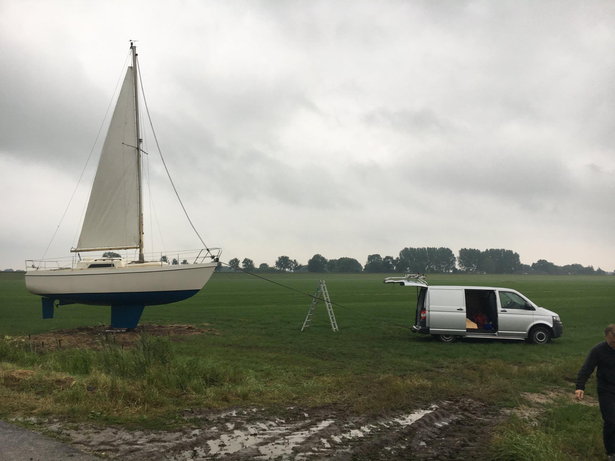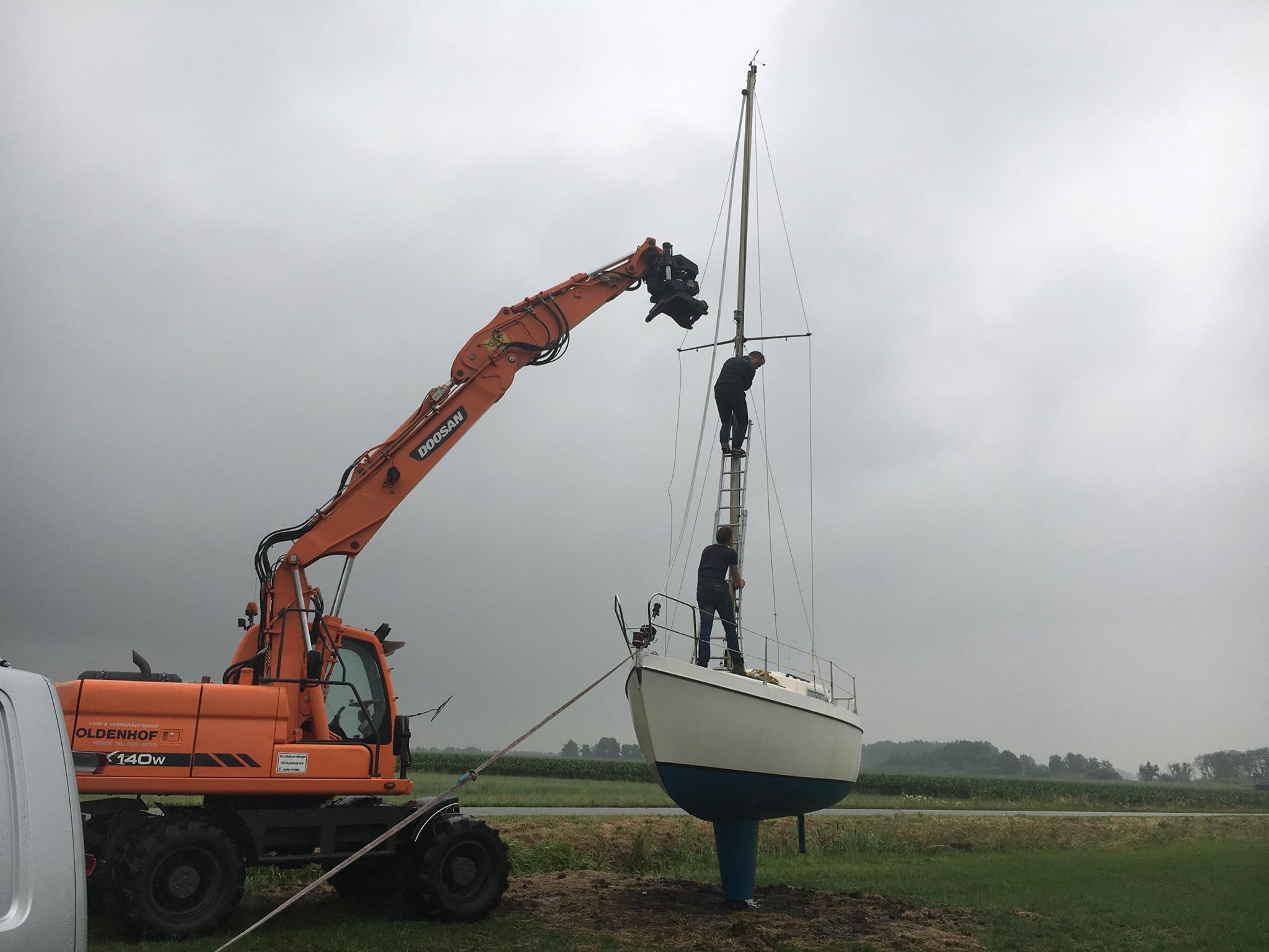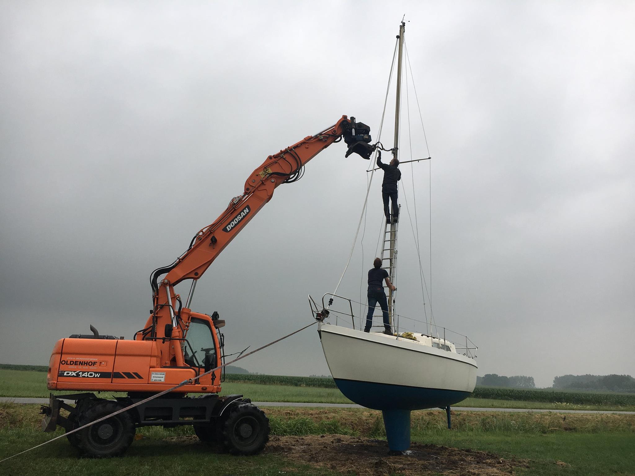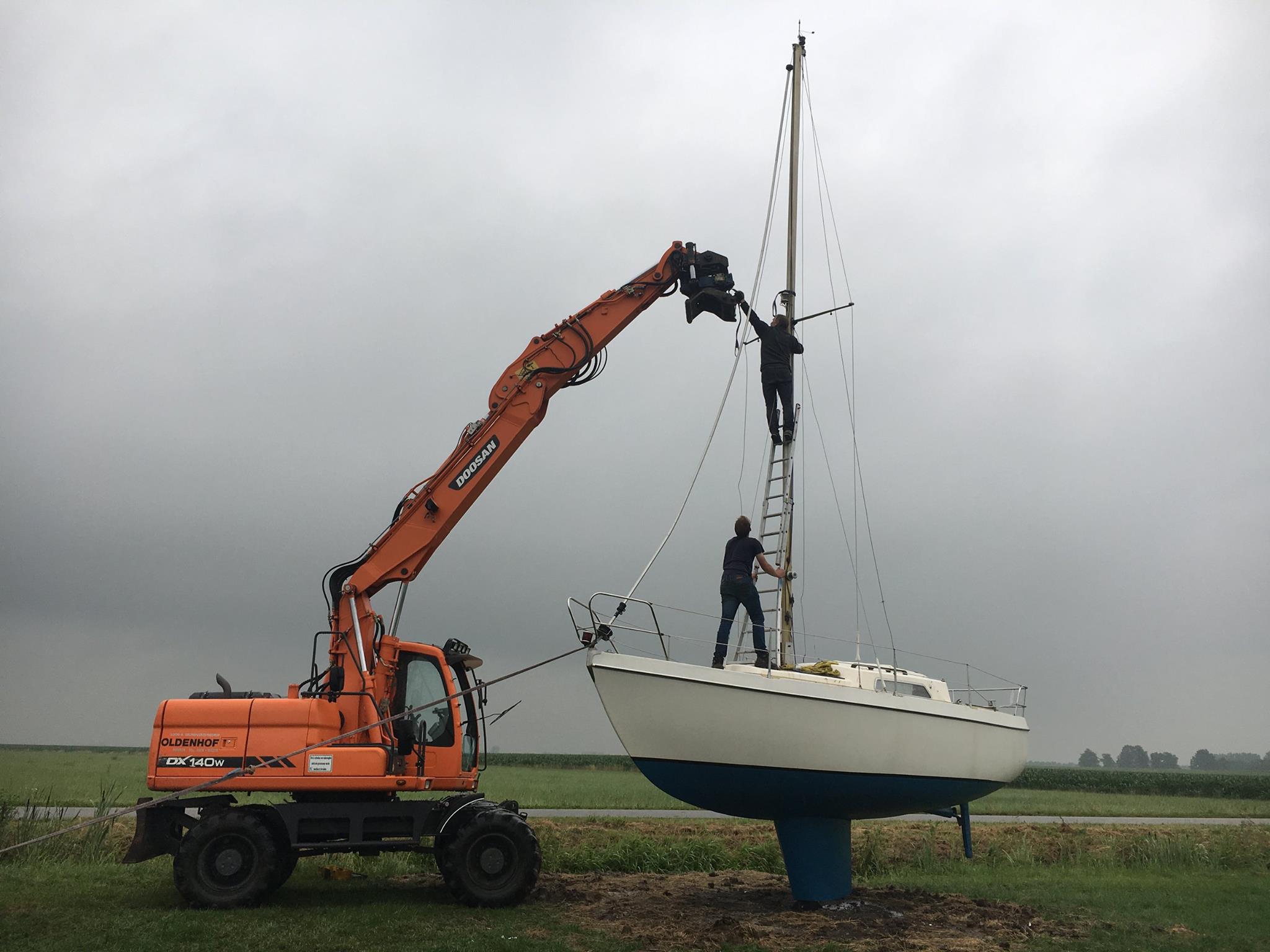 Gisteren samen met Maze de Boer zijn kunstwerk bij de IJsselbiennale onderzocht op geruchten dat deze vernield zou zijn door mensen die niet van zeilen houden. Klopt niks van is #fakenews we hebben er zelfs een kraan bijgehad om de mast er af te tillen om te kijken of de mastvoet stuk was en of de tuigage beschadigd zou zijn..Niets van dat alles het ziet er pico bello uit, dus veel kijkplezier deze zomer, ook in Vorchten