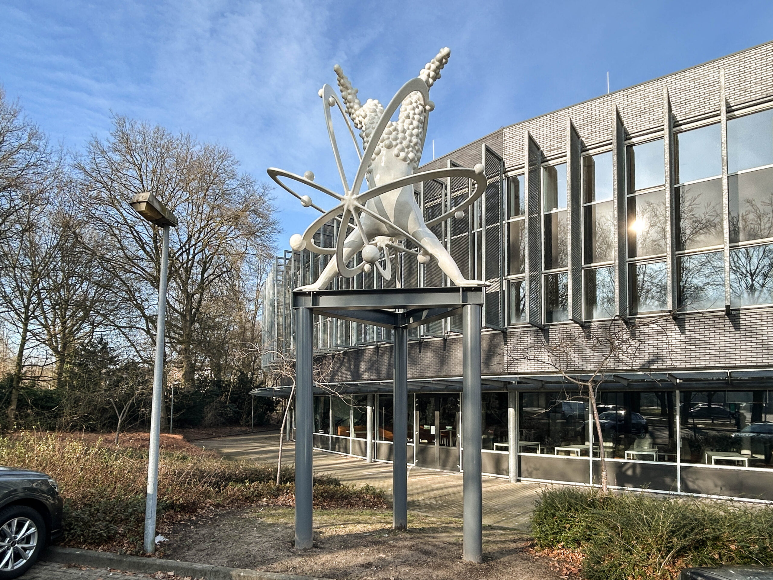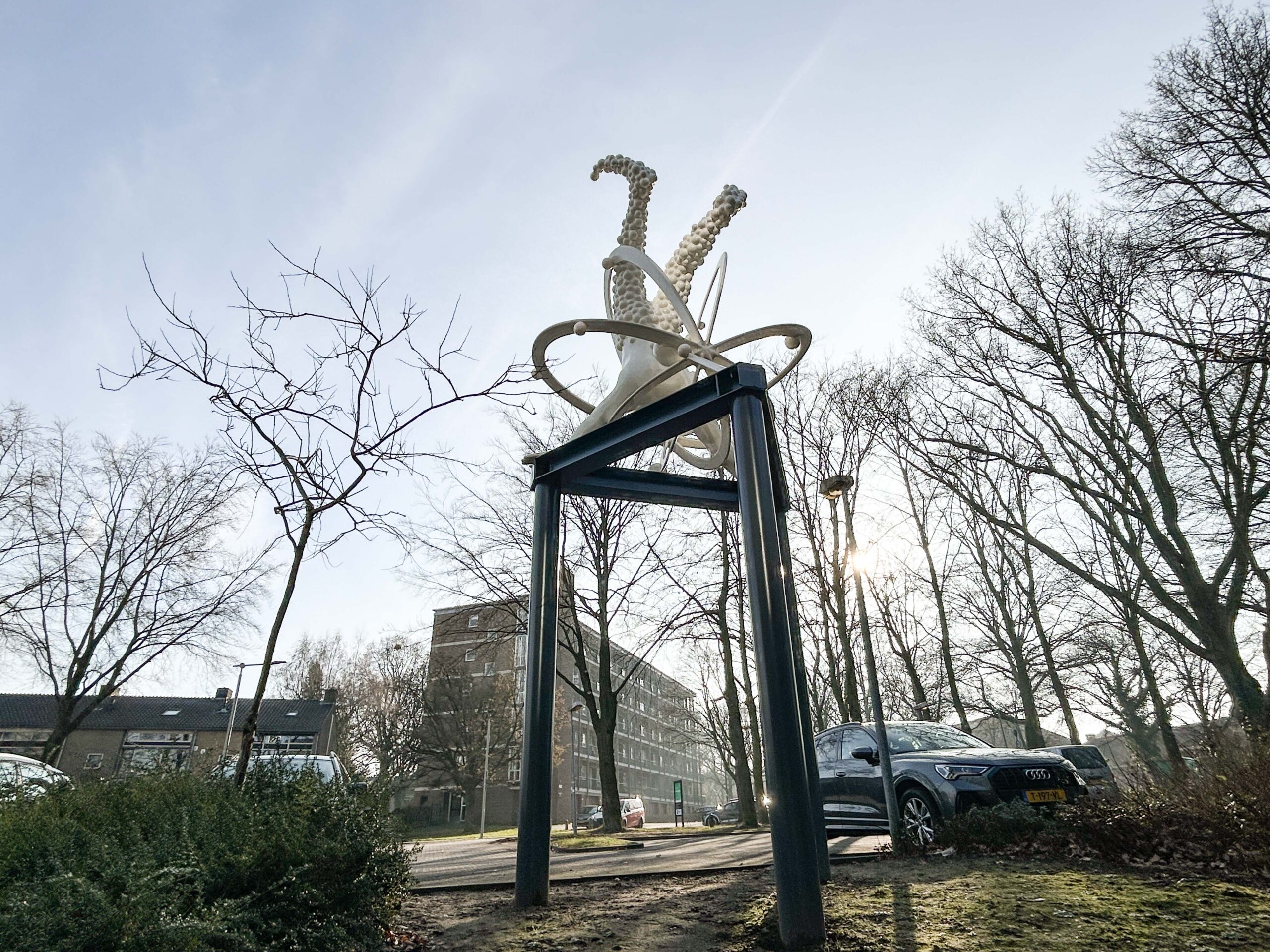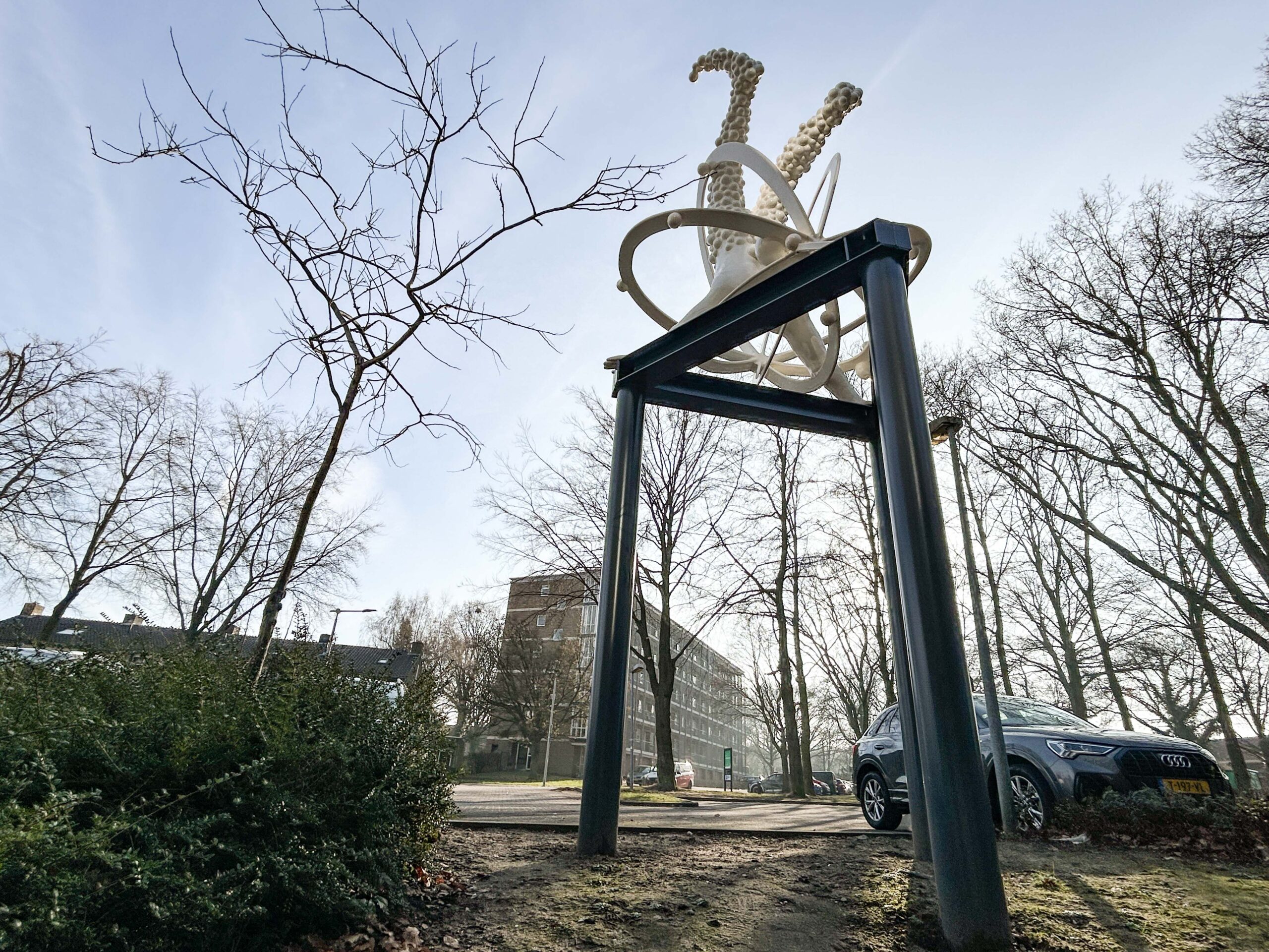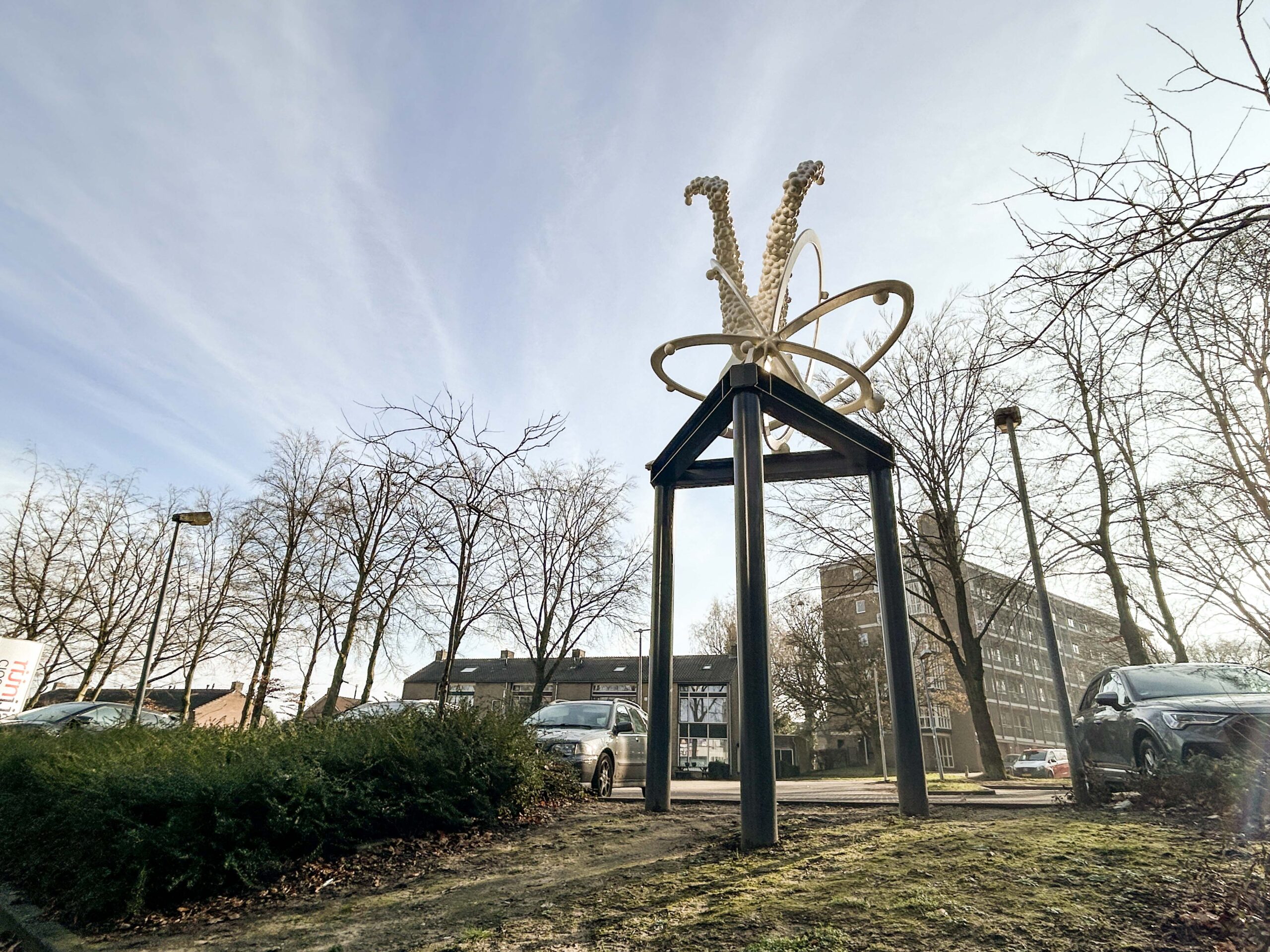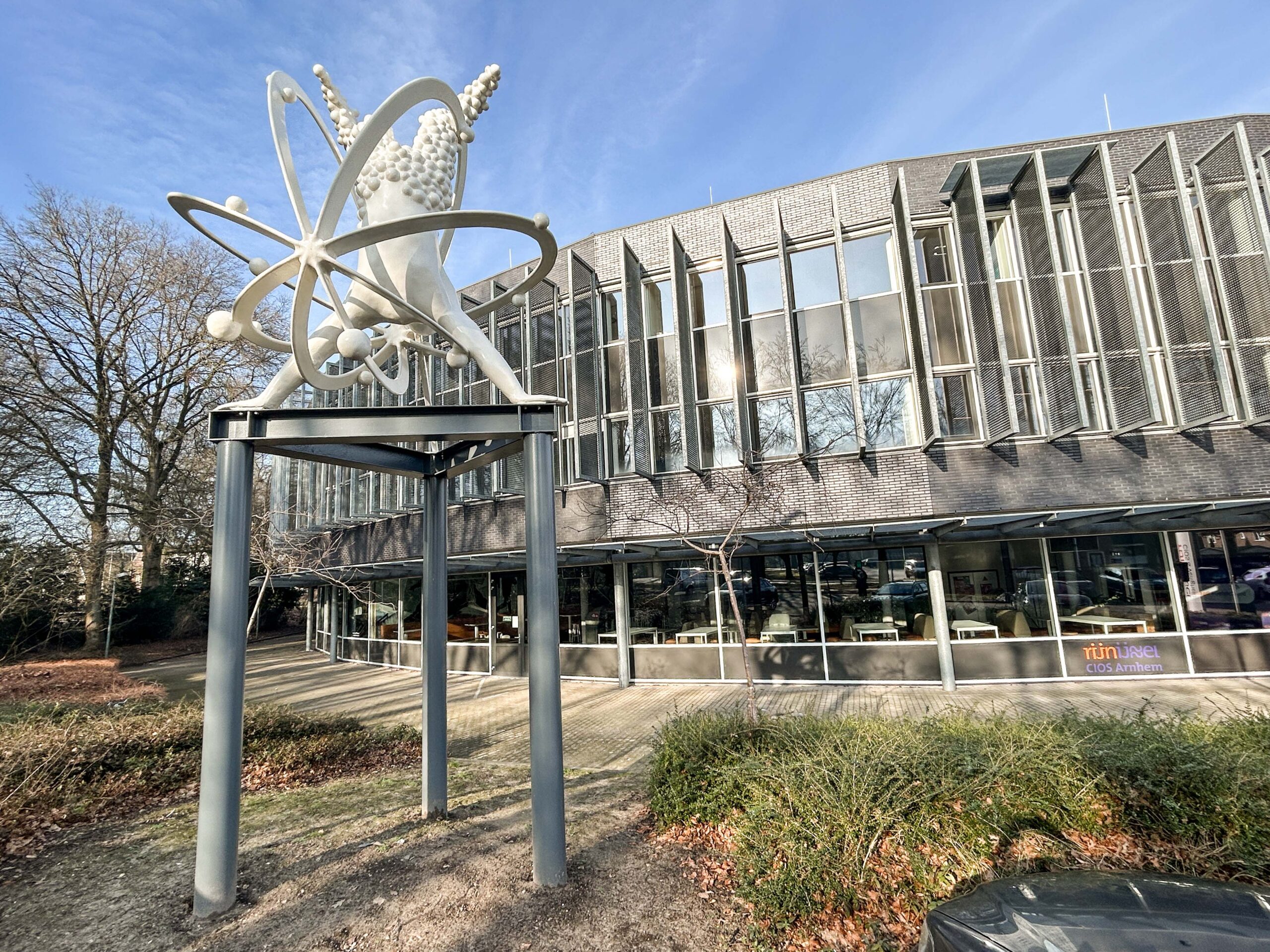 Omdat we zo’n achterlijk lang zomerreces hebben gehad………….waarbij de ene helft van het kunstenaarsduo op zoek ging naar zijn innerlijke cowboy en de andere een noodpakket aan het bouwen was in het Scandinavische, zouden we bijna vergeten dat we het afgelopen jaar ook nog hebben gewerkt aan wat kunst in public space. We hebben natuurlijk in het verleden wel het een en ander gepost over ‘ Prinses Carnabal ‘ oftwel een kunstwerk wat we hebben ontworpen voor het voormalig CIOS in Arnhem, wat tegenwoordig RIJN IJSSEL heet. In ieder geval moest er in mei van het afgelopen jaar dus nog een kunstwerk worden opgeleverd, geplaatst worden, maar omdat we natuurlijk druk, druk druk waren met fietsen door de woestijn, blokhutten bouwen in Zweden, beren fluisteren in Canada en bijkomen van al dat ‘ Natural Life ‘ was het er nog niet van gekomen om een paar fatsoenlijke plaatjes te schieten en wat te publiceren op het sociale podium….maar goed, bij deze dus wat beeldmateriaal van onze laatste telg uit het universum van de Spacecowboys…. ‘ Handstand 2.0 ‘