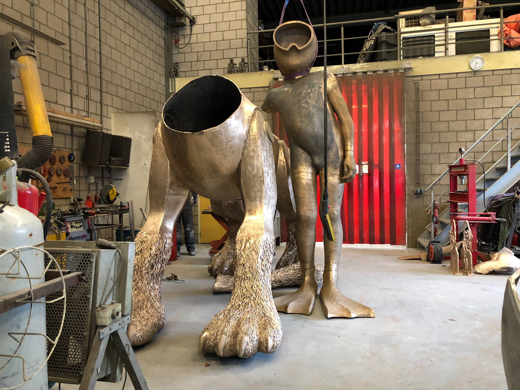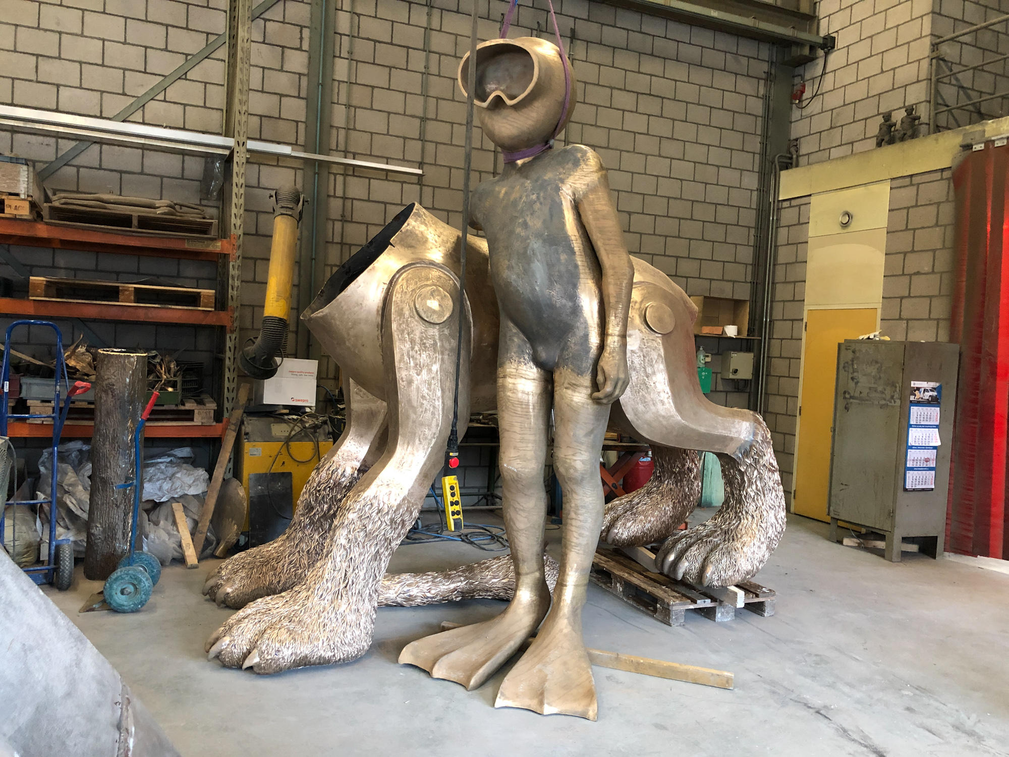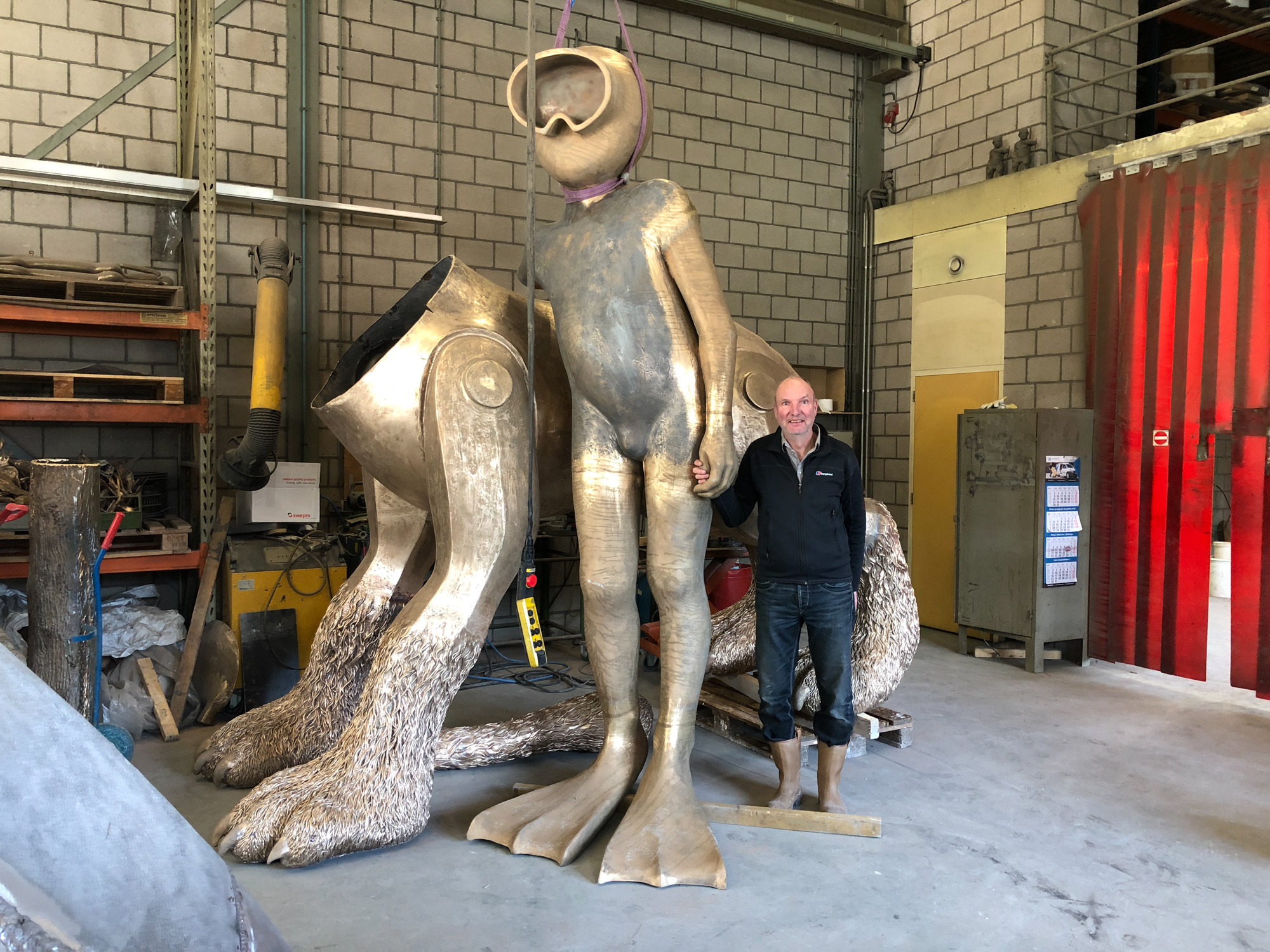 Jaja daar ging het hartje sneller van klopperen, of klepperen ook wel… 2e poging om z’n kop te gieten, maar nu wel wel met succes…! Afgelopen donderdag ging dan het laatste deel van de Wolf de soep in, om een paar dagen later er gestold weer uit te komen. Haartjes keurig op de plek, oogjes open en alvast lichtelijke loerend naar argeloze voorbijgangers. Nee gelukkig was het geen bericht, goed bericht en vanmorgen (woensdag) kon ik al zien dat de Poolse kappers alweer bezig waren om met heul veul geduld en vakbekwaamheid de restjes gips uit de neus te peuteren, ik zeg success… Ja en voor de rest stond de kleine Paul nog even hand in hand met de Aquanaut… selfie.. En dat alles forever op film gezet door Rob Haverkamp van TV Gelderland, het 3e deel van Wolfmasters of the Universe..