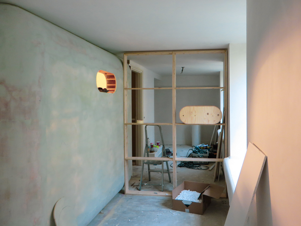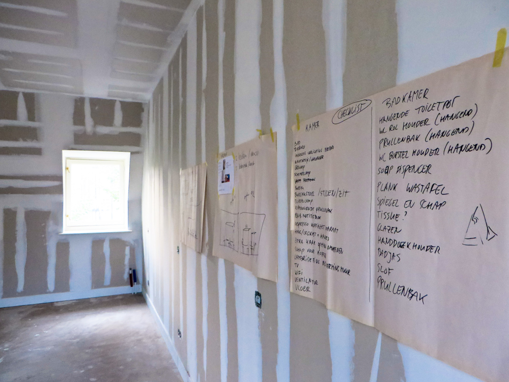 En wordt er verder nog doorgezaagd in de werkplaats….? Zekers, zoals gezegd time to catchup, want ondertussen zijn we al vanaf begin 2017 betrokken bij de transformatie van de Latijnse School in Deventer tot een Überhip Stadshotel en omdat we een beetje achterlopen met het nieuws een hele kort flash… ” Naast de nieuwbouw van de Bibliotheek op de Stromarkt en het grote project van theater de Viking krijgt ook het Grote Kerkhof een upgrade. Zo komt er op de plek van de Latijnse School een nieuw hotel: In het huis van Deventer City Lofts. Rob geeft ons een rondleiding door het pand. ”Hotel In het huis van Deventer is niet is standaard, want wij hebben onze stad in huis gehaald. En dat doen we samen met interieurarchitect Ellen Schild van Studio Groen+Schild. Uniek en eigen zodat je direct voelt dat je niet Lost in translation bent in het zoveelste hotel aan dat anonieme plein, of langs die onpersoonlijke snelweg.” Het hotel krijgt maar liefst 7 city lofts voor 2 tot wel 10 personen. Als B&B of als hele verdieping zodat je met je familie of vrienden kunt verblijven met je eigen ingang en woonkamer/keuken. Deventer kamers. En elke kamer heeft dan weer zijn eigen thema, de focus ligt op stad en tuin. Rob: ”Samen met kunstenaarsduo Albert Dedden en Paul Keizer (Spacecowboys) halen we de stad binnen door het karakter van Deventer in iedere kamer te laten doorklinken. Denk aan een Cabin in the woods, je volledige badkamer uitgevoerd in het groen alsof de stadstuin je kamer is binnengekropen. Een enorme golvende boekenkast als wand die je laat zien dat Deventer door letters, drukwerk en boeken als sinds de 15e eeuw gevormd is. Of een kamer met een reuze versie van de Auronde, het succesbed van het Deventer bedrijf Auping. ” ( met dank aan de Buurtbode) Kortom, samen met Rob te Wierik en Andrea Bergs van “in het Huis van….” , Ellen Schild van Groen & Schild architecten , Ivo van Tiem, Albert Dedden en Paul Keizer, is er een creatief team geformeerd om het te bouwen Stadshotel een gezicht te geven en ik moet zeggen we zijn er trots om hier deel van te mogen uitmaken, want het is natuurlijk fucking spannend om met zo’n klus aan het werk te mogen. Dus met veel vallen en opstaan, volharding en hard werk in de voorbereidende fase is inmiddels de verbouw gestart aan het Grote Kerkhof 6 en wordt er in de werkplaats aan de Mr de Boerlaan ook een stevig potje epoxy geroerd en van dik hout planken gezaagd. Niets mooier ook, om alle verhalen en ideeën die we met elkaar delen ook daadwerkelijk vorm en toepassing te geven in de ruimtes van het Stadshotel. Dus komende tijd zal ik met de regelmaat posten over de voortgang en ontwikkeling van alle Hotelstories. Met nu alvast een kleine proeverij van The Cabin, een ontwerp voor een combinatie badkamer die eruit ziet alsof t’ie tussen vloer en plafond geperst is en straks een prachtig contrast oplevert met de tuin waar het appartement aan grenst. Een groene stadsoase en een spacecabine, alsof je regelrecht op een andere planeet bent geland.