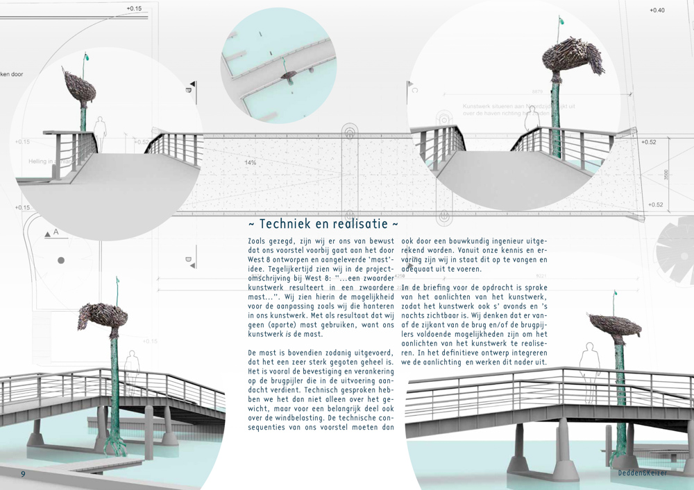 Long story, short. Dus korte metten met een goed verhaal. Wat begon met een mailtje op 28 december 2016 met de vraag of we onze documentatie wilden inzenden voor een kunsttoepassing in Leidschendam, is afgelopen januari uitgemond in de keuze voor ons ontwerp voor een kunstwerk op een brug over de Plaspoelhaven. Goed dat was natuurlijk wel heel erg short, dus iets meer detaillering graag…….. Ok, nadat we de documentatie hadden ingezonden bleek dat we op de longlist stonden voor een kunsttoepassing op een te bouwen brug over een nieuw aan te leggen haven in Leidschendam. Brug is nog niet gebouwd, maar alvast wel veel mooie tekeningen. Het ontwerpbureau is West8 die de vernieuwing van het gebied voor zijn rekening neemt evenals het ontwerpen van de brug. Awel na de longlist kwam de shortlist en daar waren we aangeland samen met Tom Claassen en Fernando Sanchez Castillo, dus mochten we elkaar de tent uitvechten voor de 1e prijs. Dus op naar de presentatie op 29 augustus 2017 voor de kunstcomissie in Leidschendam, dat duurde een paar maandjes langer dan verwacht, maar uiteindelijk zou de beslissing voor het uit te voeren kunstwerk genomen worden na een kiesronde door de lokale bevolking, tijdens een openbare presentatie op 26 januari in Leidschendam. Nadat we begrepen dat de keuze bij de bewoners zou komen te liggen, werden de anti-depressiva alvast op het nachtkastje neergelegd, want mijn ervaring met openbare kunstkiezers is niet echt om blij van te worden. Ik vindt democratiseren prachtig, maar niet in de kunst. Maar Allah, we gingen het zien….. Tsja en de publieke opinie is dit keer in ons voordeel beslecht en nadat de raad ook geen bezwaar had zitten we om tafel, met alle partijen, om te komen tot een definitief ontwerp. Oh ja inmiddels is het 21 augustus 2018. Goed, viel wel mee toch? redelijk beknopt maar nog steeds niks laten zien…. Dus bij deze dan een PDF van het voorlopig ontwerp met beeld en verhaal en wat plaatjes ertussen door. Snel door naar de volgende post….
