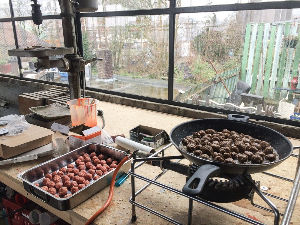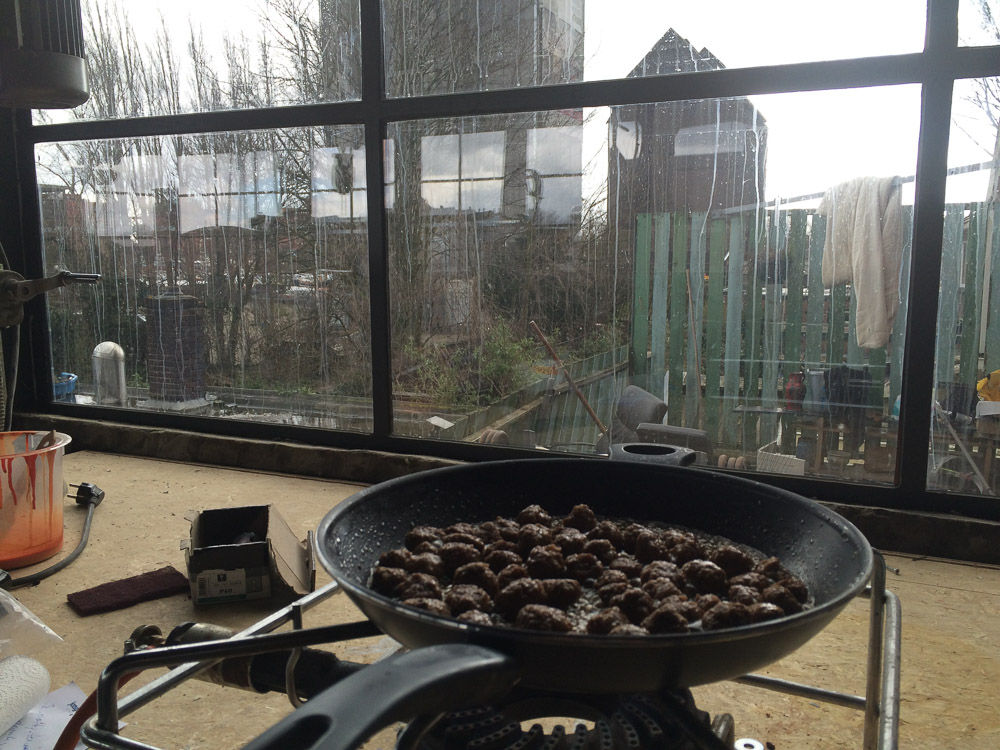 Buiten het getimmer en gezaag van onze nieuwe buren van Club PikNik, werd er vandaag ook fiks verbouwd aan een nieuw recept voor een Dinner Special op 18 april as. en wel de LOS Hot Curry Balls . De originele receptuur van ons Britse keukenschoffie Jamie leed een beetje onder te grote populariteit en was enigszins sleets geworden, maar gelukkig was daar de pot cayennepeper, gember en curcuma om de zaak eens flink up te spicen. En we kunnen stellen, Het is gelukt…! Een echte Space Curry waar je absoluut 2x plezier van gaat hebben. De deskundigen zijn het erover eens Wooow, it’s Hot…. maar ook weer niet te, zodat we de Curry kunnen aanbevelen voor het hele gezin. Dus reserveer vast uw plaats in de rij voor de 18e april, want op = op………… Binnenkort meer