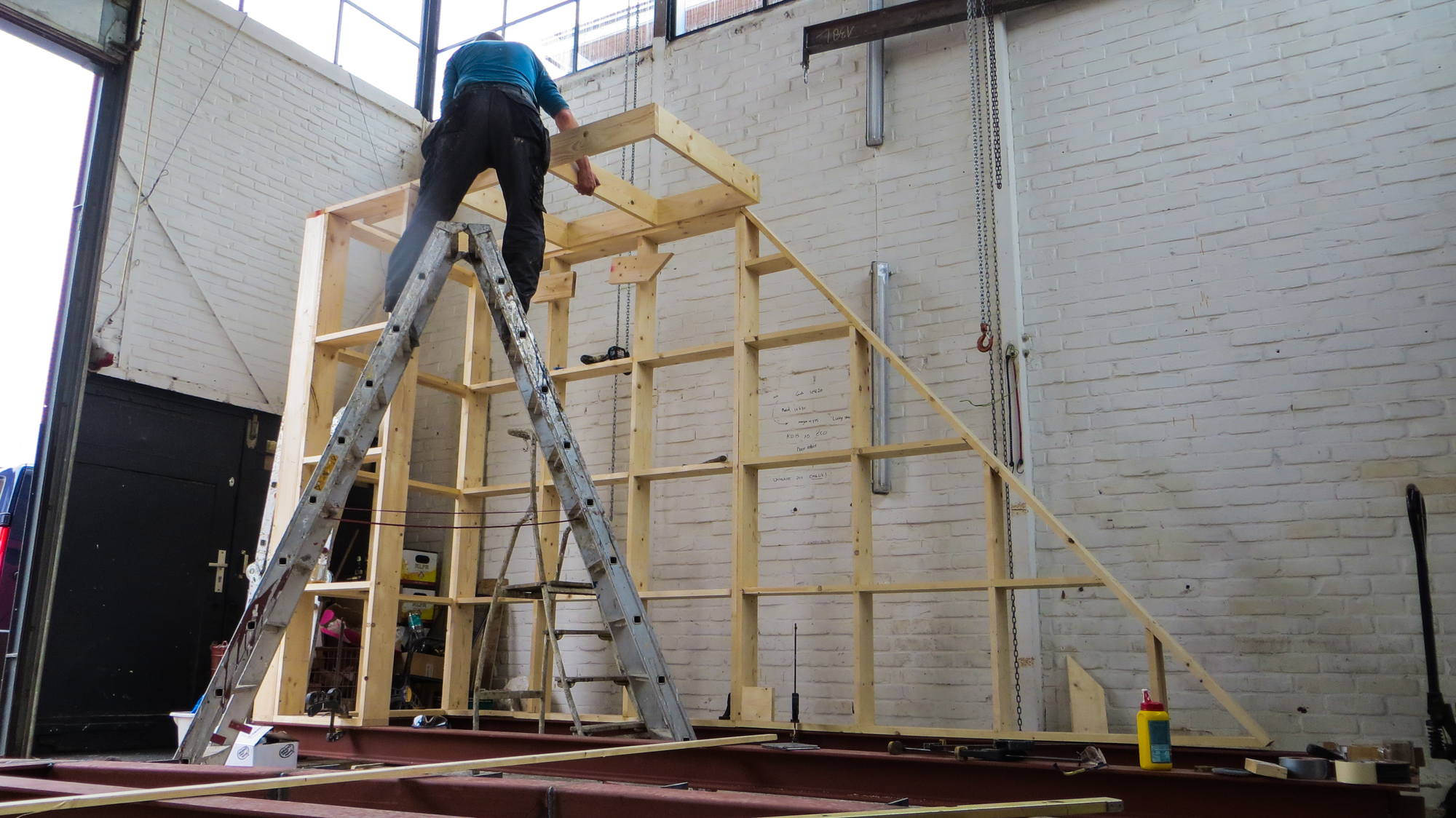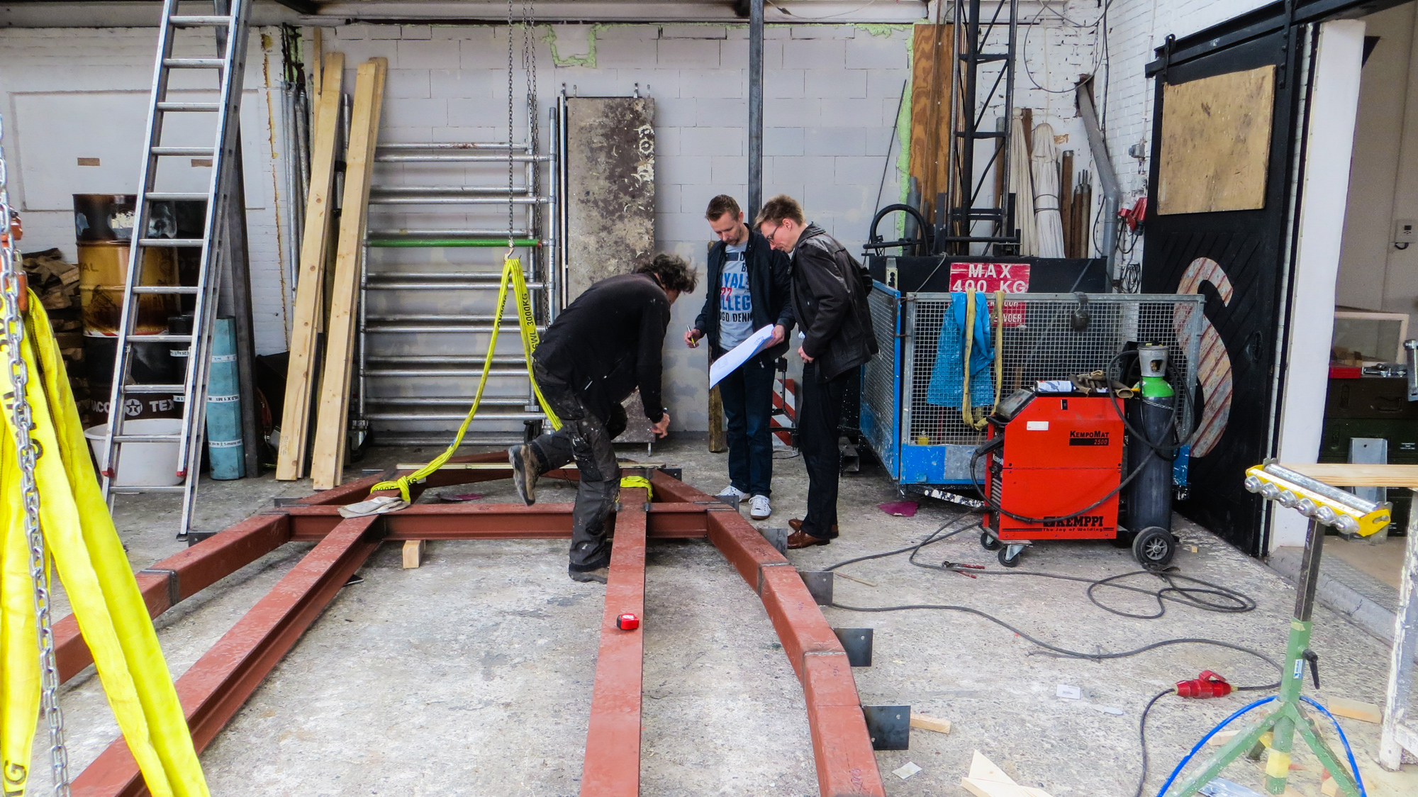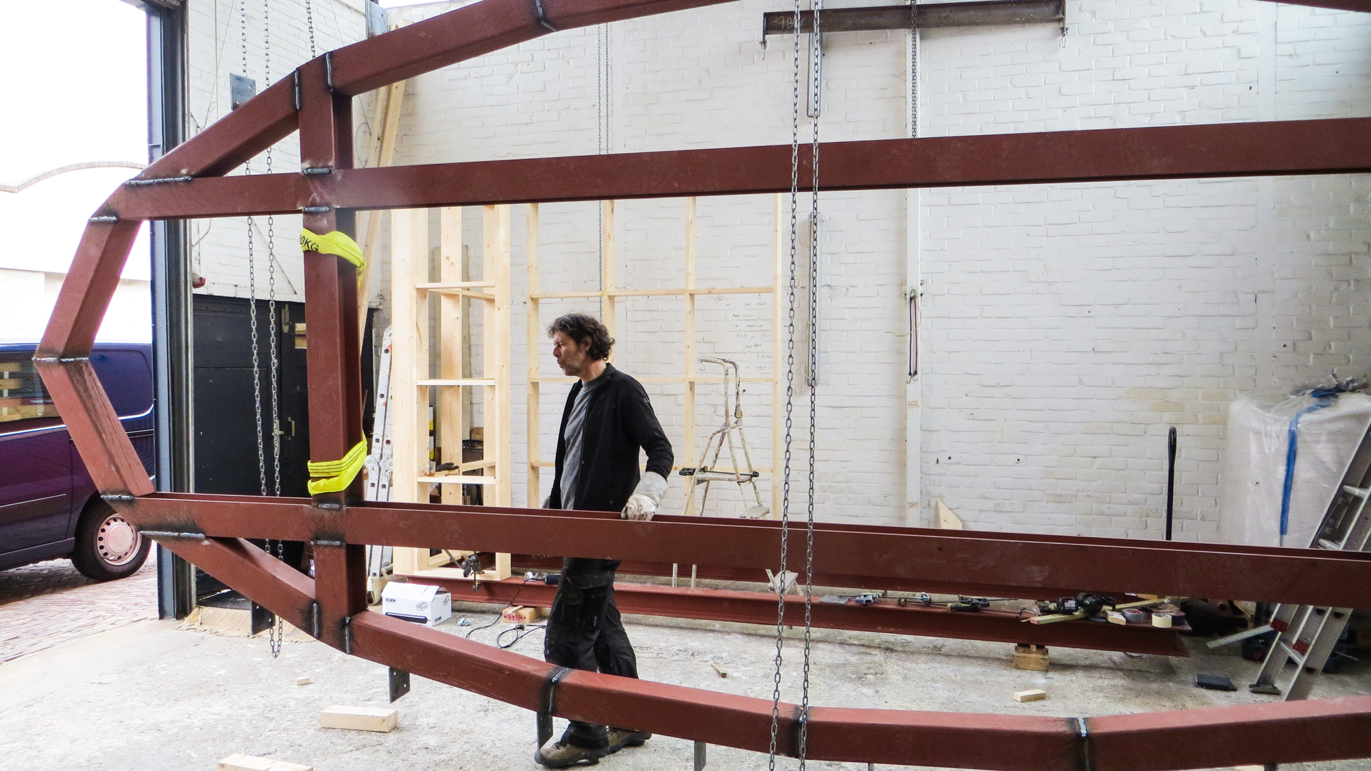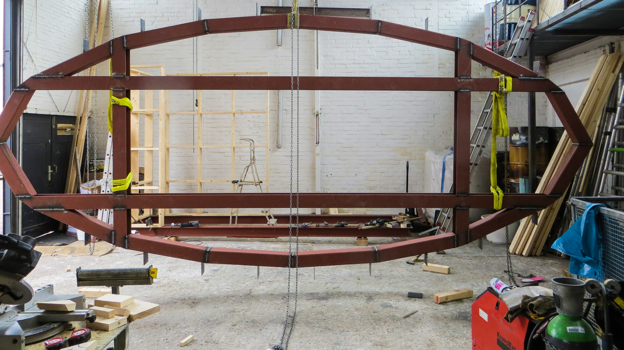 Kregen we afgelopen woensdag de vloer van de Lucy GLXY in onderdelen aangevoerd , alles keurig op maat gesneden , gezaagd en gehecht , hebben we vrijdag en vandaag flink de lasmachine laten zweten om de het geheel af te lassen en een begin te maken met de houten vloer . Ondertussen is collega Keizer flink aan het timmeren aan zijn duivenhok , die bovenop de trapopgang komt te staan en ik moet zeggen , dat gaat nog een flinke ervaring worden als je naar de Lucy gaat . Vandaag nog even bezoek gehad van de bouwkundige en de architect van Studio Groen & Schild , die al het tekenwerk hebben verricht voor de Lucy en nu dus ook in het echie komen kijken, hoe of dat ze er uit gaat zien en gelukkig bleek ook hier theorie en praktijk twee verschillende werelden . Hopelijk morgen aan de slag met de ribben , dan kunnen we met de wanden beginnen . Goed , binnenkort verder .
