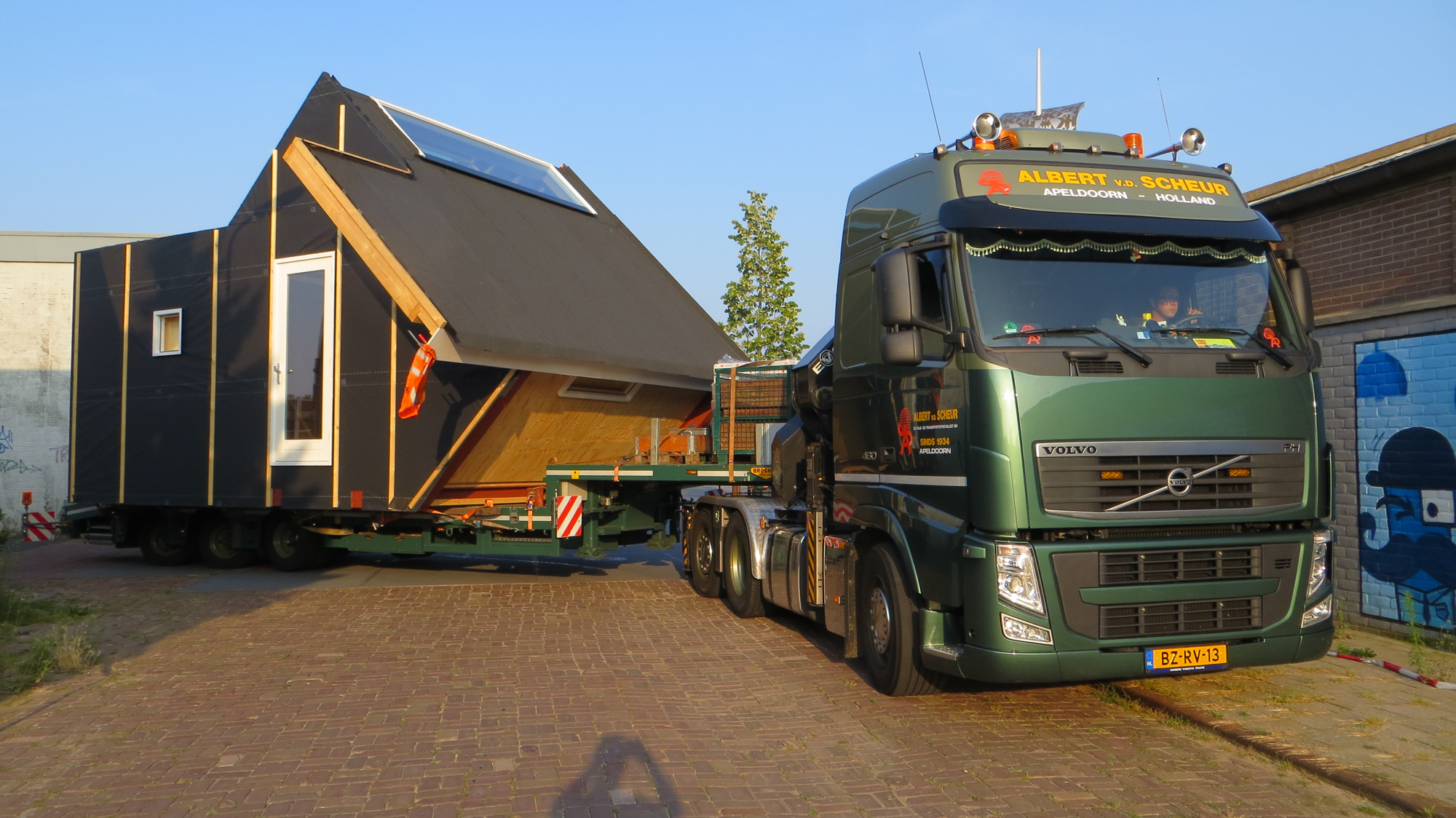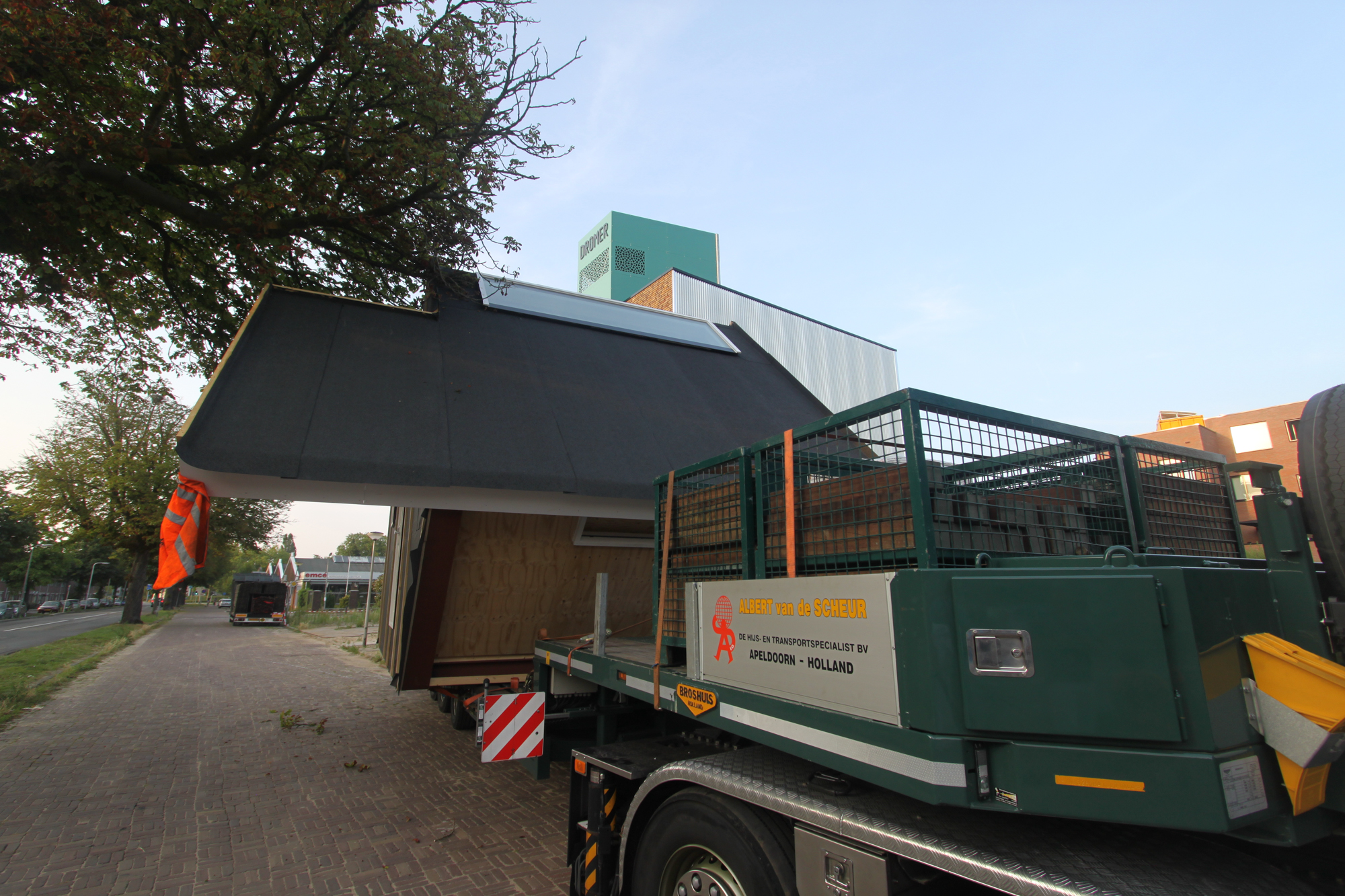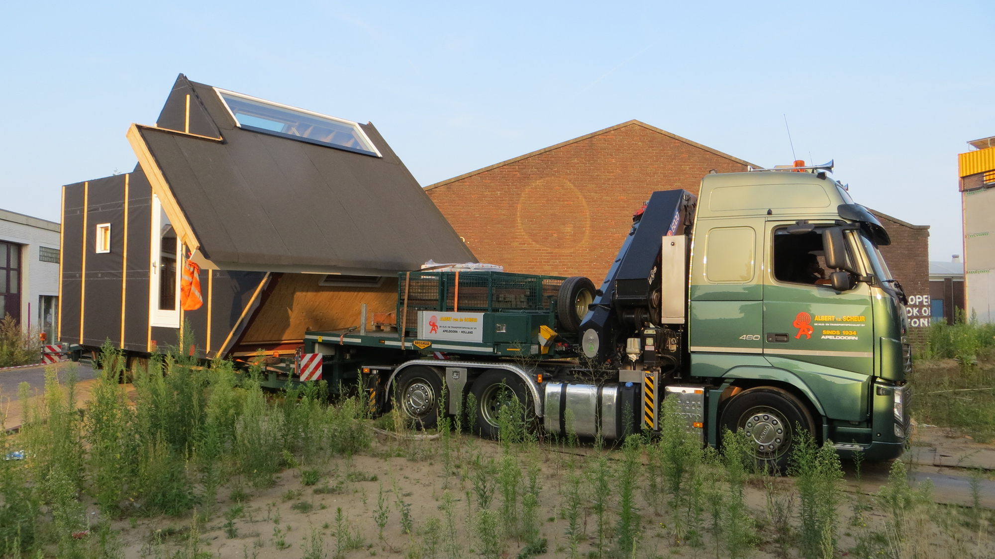 Rond een uur of 19.00 begon de undercover operatie die LucyPWR naar de Mr de Boerlaan moest brengen . De voorstelling werd om 14.000 uur ingeleid met het opladen van Lucy aan de Staverenstraat en de regie lag in handen van Albert van de Scheur Transportbedrijf onze nieuwe vrienden uit Apeldoorn die er maatwerk van gemaakt hebben van begin tot eind , we hebben alle hightech hijs en transport tools voorbij zien komen van perslucht tot pneumatiek . Maar goed om 19.00 uur ging de reis van start en vanaf de Oostzeestraat ging het off road naar de Mr de Boerlaan onder de kastanjes door en perfect pas op de plaats van bestemming bij de Han Wai container , waar onze Lucy op dit moment staat te blinken in het ochtendzonnetje (daar later wat foto’s van ) was een spannend dagje met een geweldige afloop en veel dank aan onze vrienden van Albert van de Scheur . Binnenkort meer …….en zie voor jezelf.