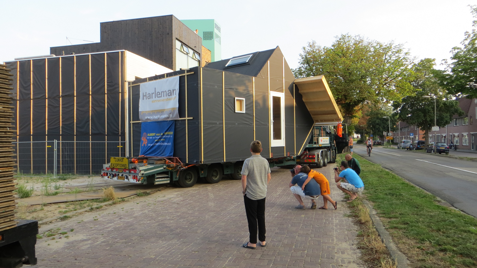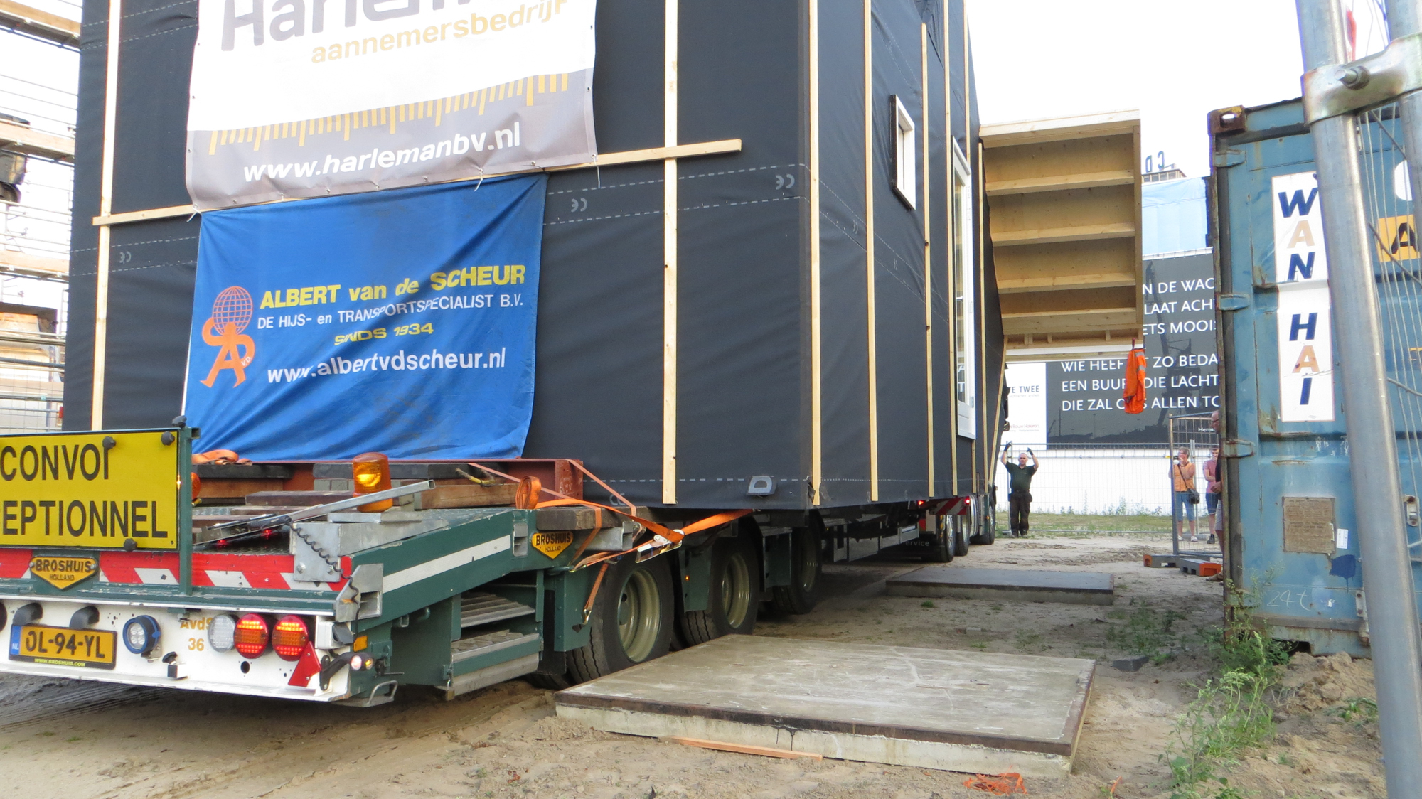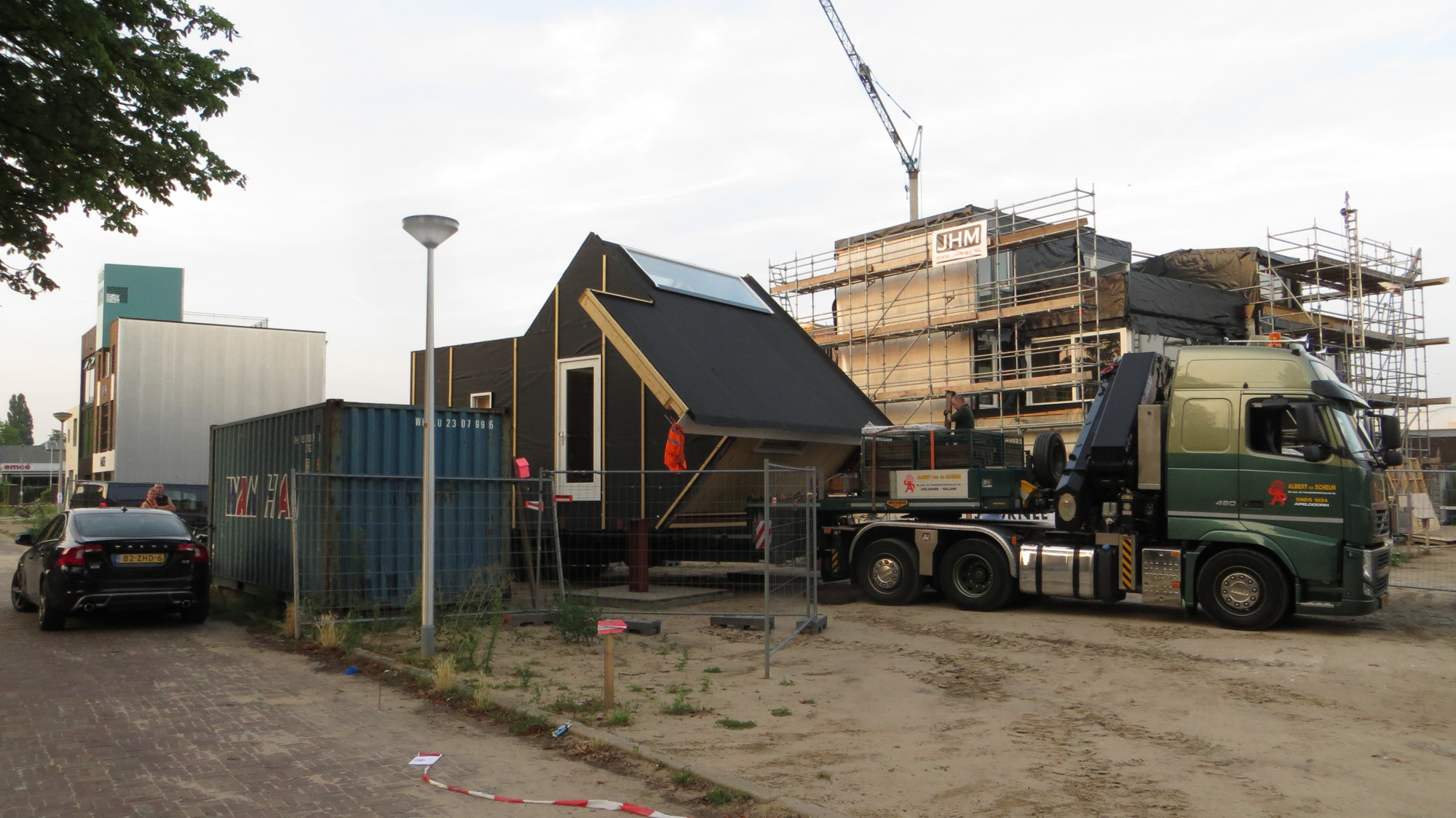 Rond een uur of 19.00 begon de undercover operatie die LucyPWR naar de Mr de Boerlaan moest brengen . De voorstelling werd om 14.000 uur ingeleid met het opladen van Lucy aan de Staverenstraat en de regie lag in handen van Albert van de Scheur Transportbedrijf onze nieuwe vrienden uit Apeldoorn die er maatwerk van gemaakt hebben van begin tot eind , we hebben alle hightech hijs en transport tools voorbij zien komen van perslucht tot pneumatiek . Maar goed om 19.00 uur ging de reis van start en vanaf de Oostzeestraat ging het off road naar de Mr de Boerlaan onder de kastanjes door en perfect pas op de plaats van bestemming bij de Han Wai container , waar onze Lucy op dit moment staat te blinken in het ochtendzonnetje (daar later wat foto’s van ) was een spannend dagje met een geweldige afloop en veel dank aan onze vrienden van Albert van de Scheur . Binnenkort meer …….en zie voor jezelf.
