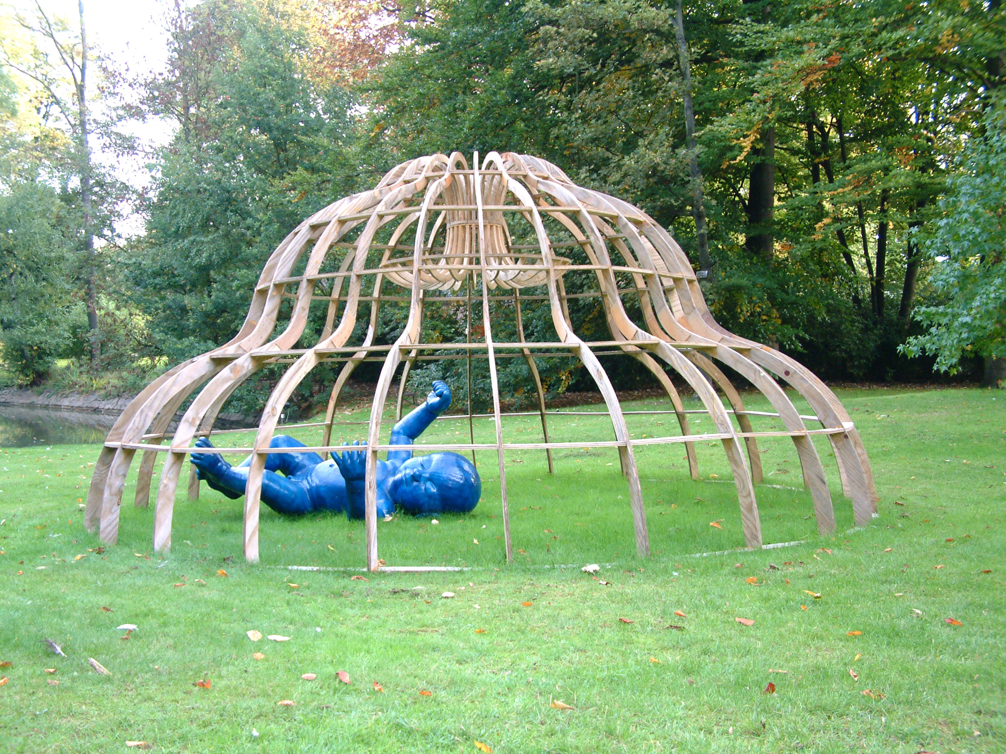 Zodra ik met mijn voeten uit de bestaande gang ben en helemaal in het nieuwe deel lig, blijf ik heel stil liggen. Ik weet nooit precies hoe lang ik zo lig, maar er is een moment dat ik alleen nog maar de warmte van de grond onder mij voel, de ruis van insecten en het geritsel van veldmuisjes om mij heen hoor en in de geelgroene grassprieten voor mij slechts één groot volume zie. Door dat groene lichaam zoek ik mij al kruipende een weg.