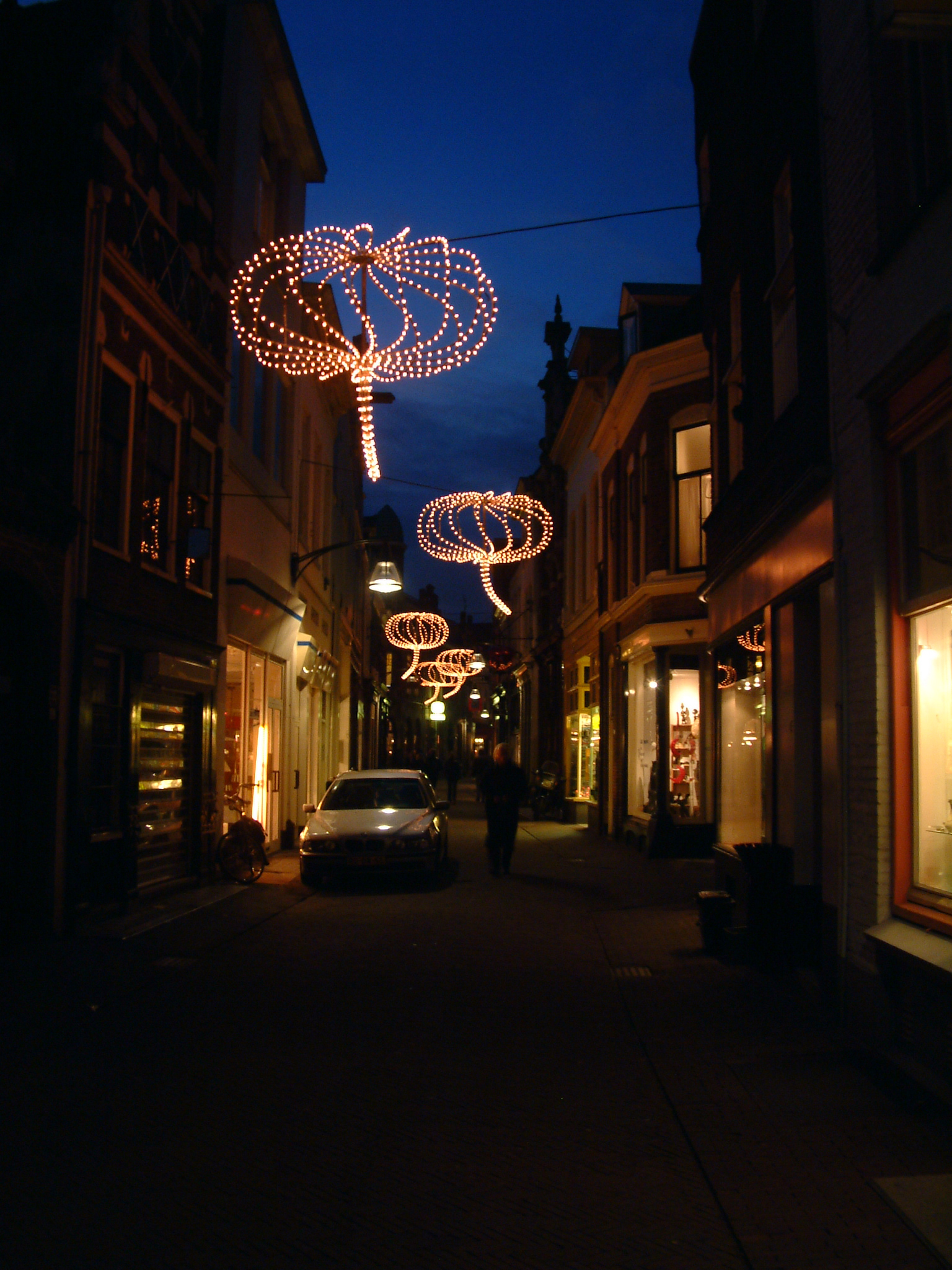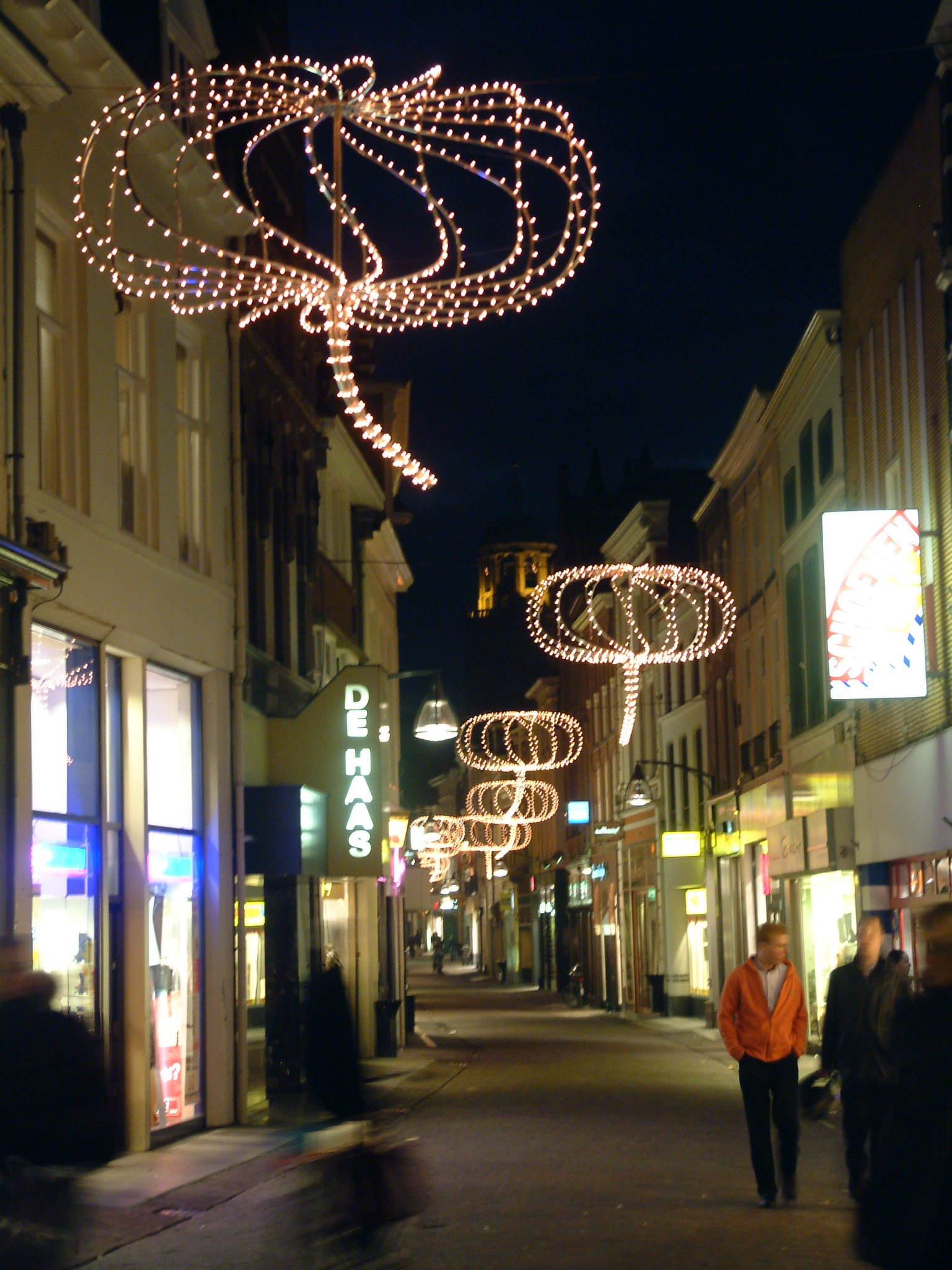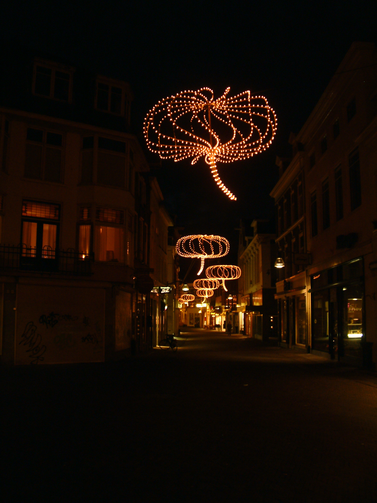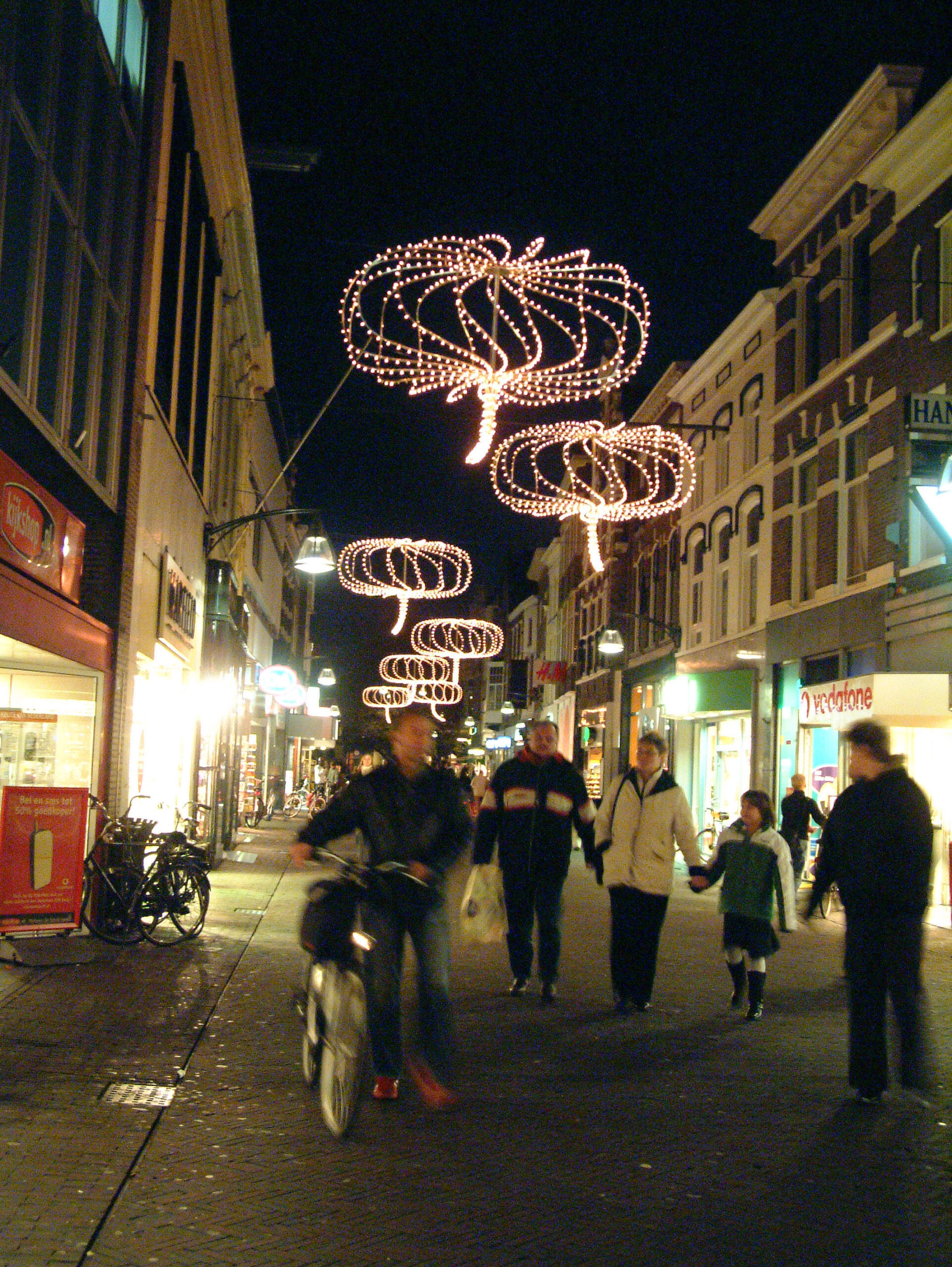 De maatvoering en plaatsing van de lichtarmaturen in de straten benadrukken de ruimtelijke kwaliteit van de binnenstad. De grootte is afgestemd op het profiel van de verschillende straten waardoor er overal een gevoel van openheid, ruimte en hoogte blijft. ’s Avonds lijken ze zich vrij in de ruimte te bewegen en vormen ze een stroom van haast zwevende lichtobjecten. Dit onderstreept op speelse wijze de structuur en routing in het winkelgebied.