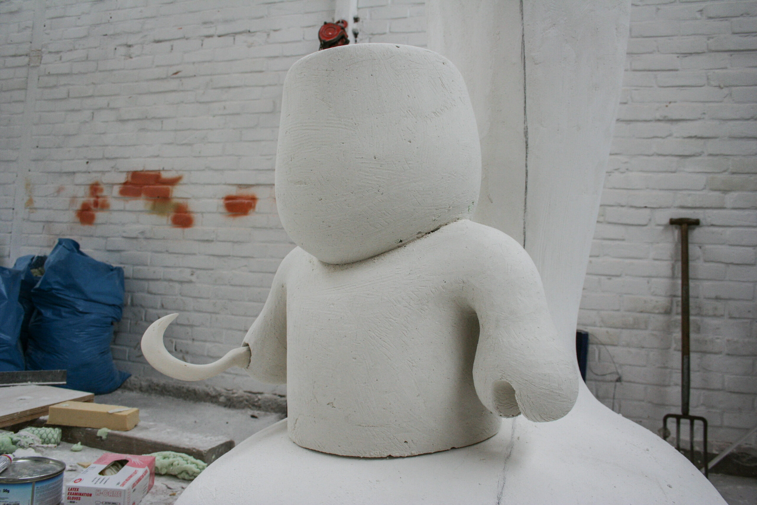 “ BEACH BOY “ is de titel van ons beeldvoorstel. Het is een sculptuur uit één stuk; een naadloze samenvloeiing van krachtige beeldelementen, die zich als een verhaal laten lezen. Prominent refereert de sculptuur naar een door aanhoudend sterke wind verwaaide boom. Met een cipresachtige kroon die volledig in een horizontale positie is verwaaid, vrijwel haaks op de stam. De golvende vormen in de puntige kroon geven snelheid aan de richting van de wind. De stam is een krachtig menselijk been dat weestand biedt aan de krachten die er spelen, het houdt alles op de plaats. De voet van het been is als een perfect opgeblazen kussen, onder precies de goede spanning komt het iets los van de grond. Op het kussen zit een jongensachtig figuurtje. Meer nog dan er op, is het jochie echter licht verzonken in het kussen. Alsof het op een strand een beetje is weggezakt in het zand. Het heeft alles van een knuffel, maar is bovenal stevig en stoer. Zijn houding is nieuwsgierig, maar ook beetje verdwaasd, alsof hij even uitrust van alle dynamiek die zich boven zijn hoofd afspeelt. Hij heeft zijn eigen wereldje; op een eilandje zittend onder een boom.