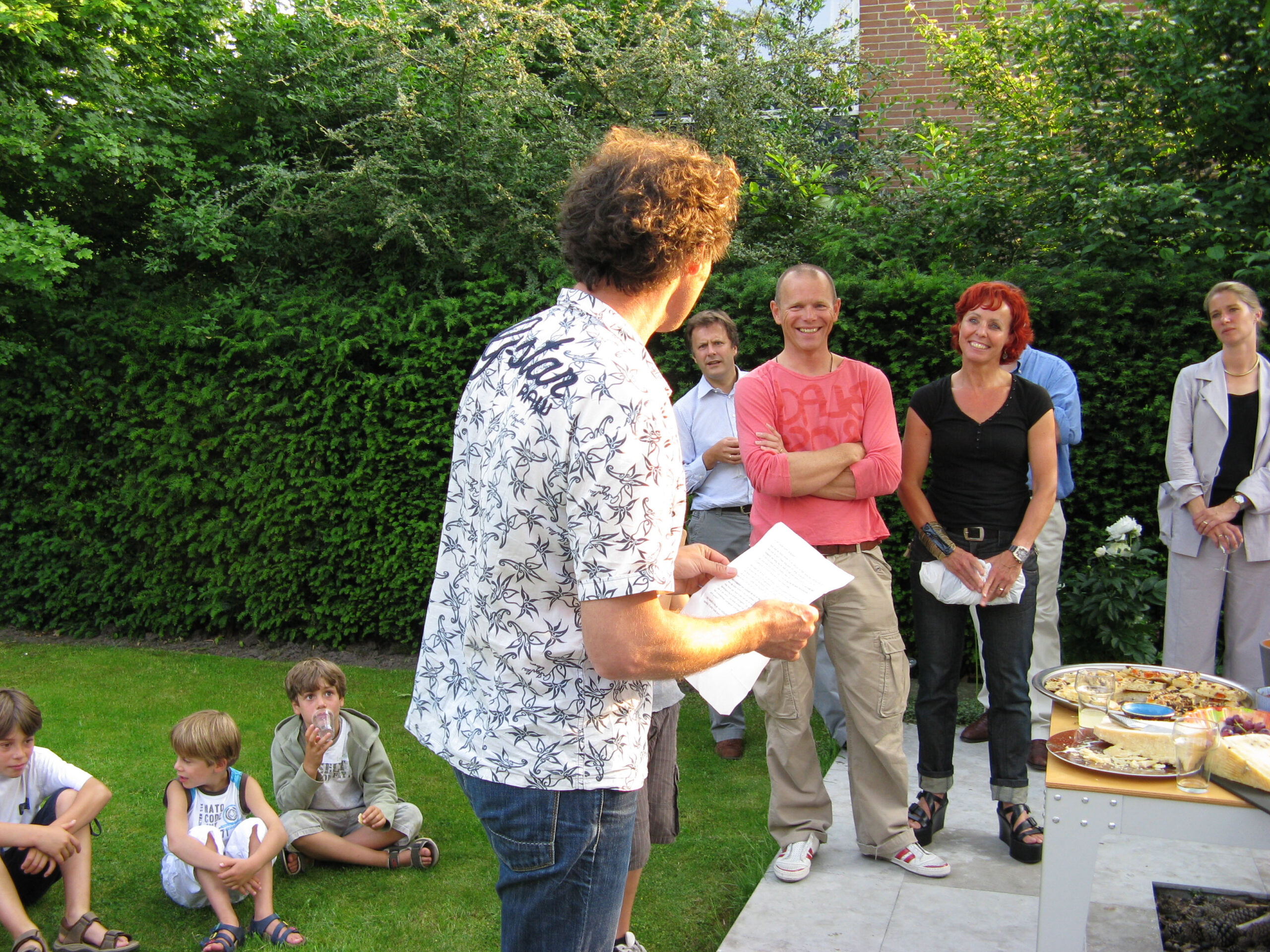 De familie Boon woont in een nieuwbouwwijk aan de rand van Bergen. De woning onderscheidt zich aan de buitenkant niet opvallend van de omliggende woningen. De binnenzijde echter, hoe zij daadwerkelijk wonen, ervaren wij wel degelijk als heel uitgesproken. De sfeer van wonen is hier vooral gericht op licht en ruimtebeleving. Het materiaalgebruik en de vormtaal zijn basic, ingetogen en in alles op elkaar afgestemd. Er is een zichtbaar streven naar kwaliteit. Zij hebben heel duidelijk een plek voor zichzelf gecreëerd, als een eiland van rust en ordening. Er is vanuit het huis volop zicht op de tuin, vrijwel over de volle breedte van het perceel. Voor de tuin geldt; “What you see is what you get”. Bepalend in de tuin is vooral het grasveld, de maat van deze rechthoekige vorm en de min of meer anonieme groene achterwand als erf scheiding van de tuin.