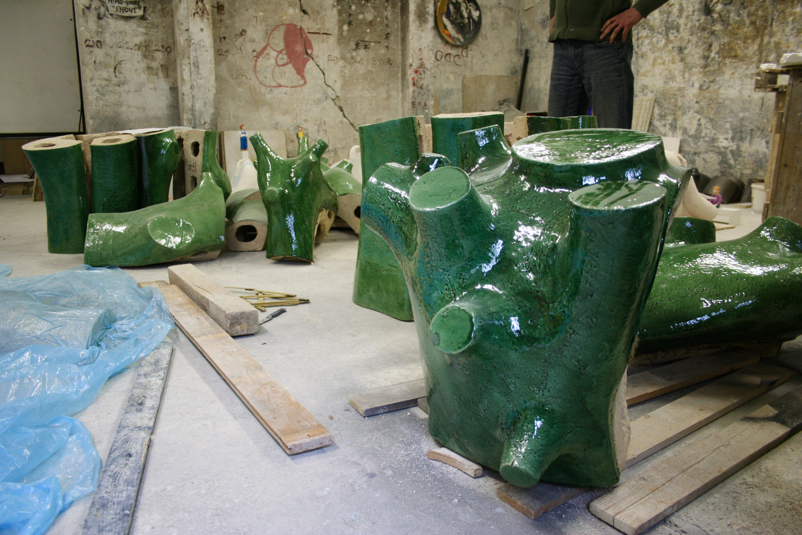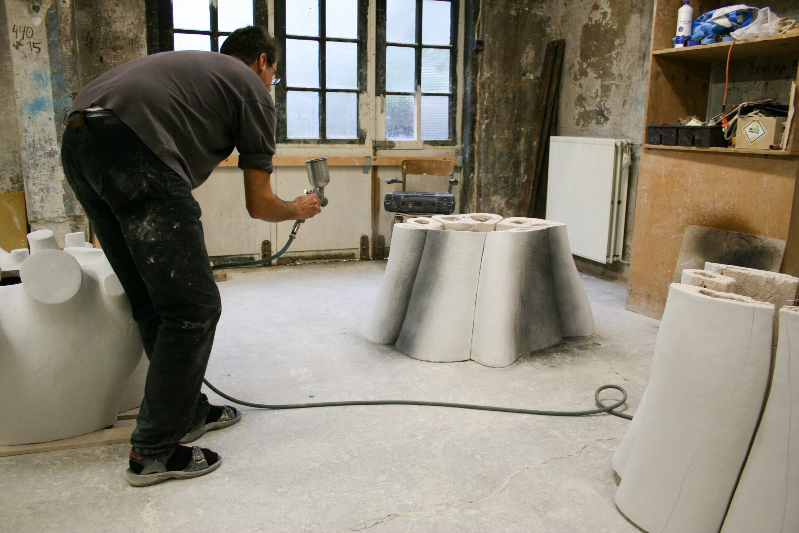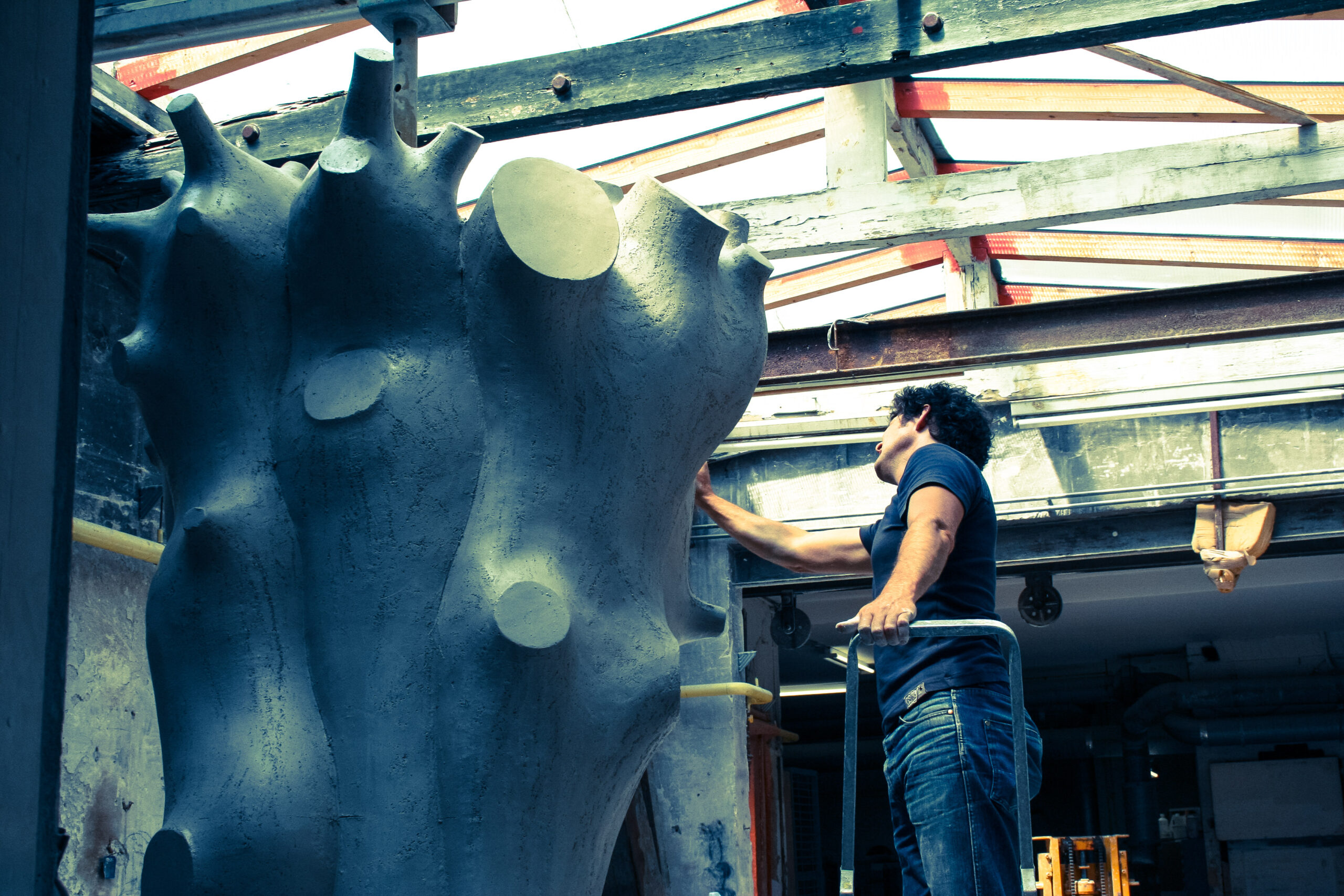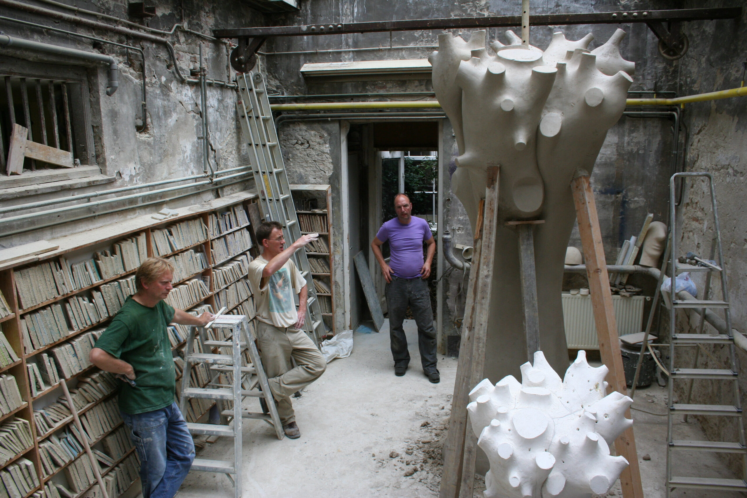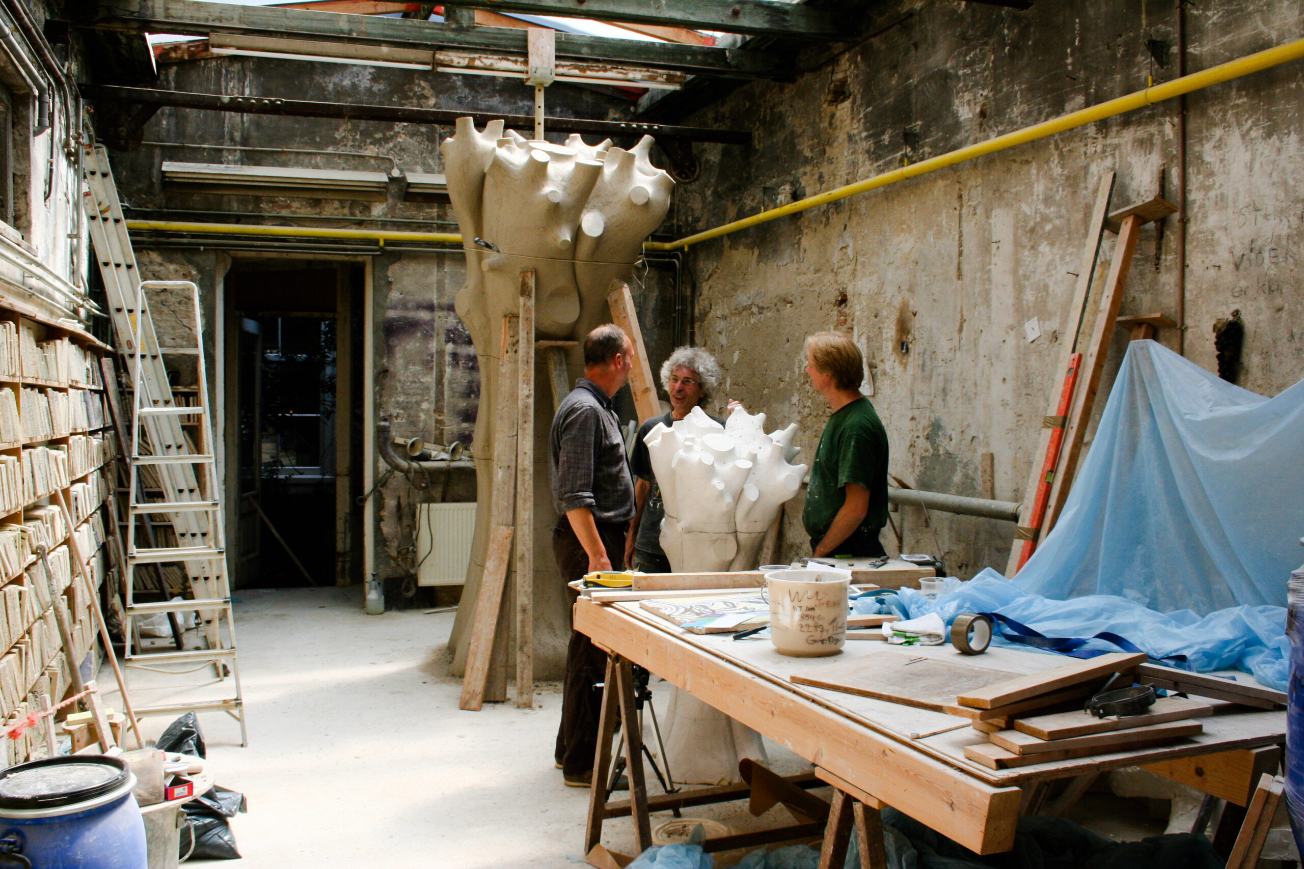 De vorm van de boom die wij hiervoor kiezen is die van een knotwilg, waarbij we de stam en de knot uitvoeren in een diep-groen geglazuurde keramiek. Een sculptuur waarvoor een aantal bestaande knotwilgen model hebben gestaan. De knot lijkt ook nu het resultaat van intensief snoeiwerk. De takken die nog wel uit de knot ontspruiten willen we uitvoeren in brons. Dit zullen afgietsels worden van echte wilgentakken. Deze takken worden niet als zovaak gepatineerd, maar gepolijst. Zij krijgen daardoor een glanzende, diep-warme gouden gloed. Het beeld ontstaat van een oude doorleefde boom, eenvoudig, maar met jonge loten in de kroon, gezond en van een ongekende rijkdom. Kan dit een beeld zijn van de stad? Historisch gegroeid, maar met groeikracht en potentie tot vernieuwing.
