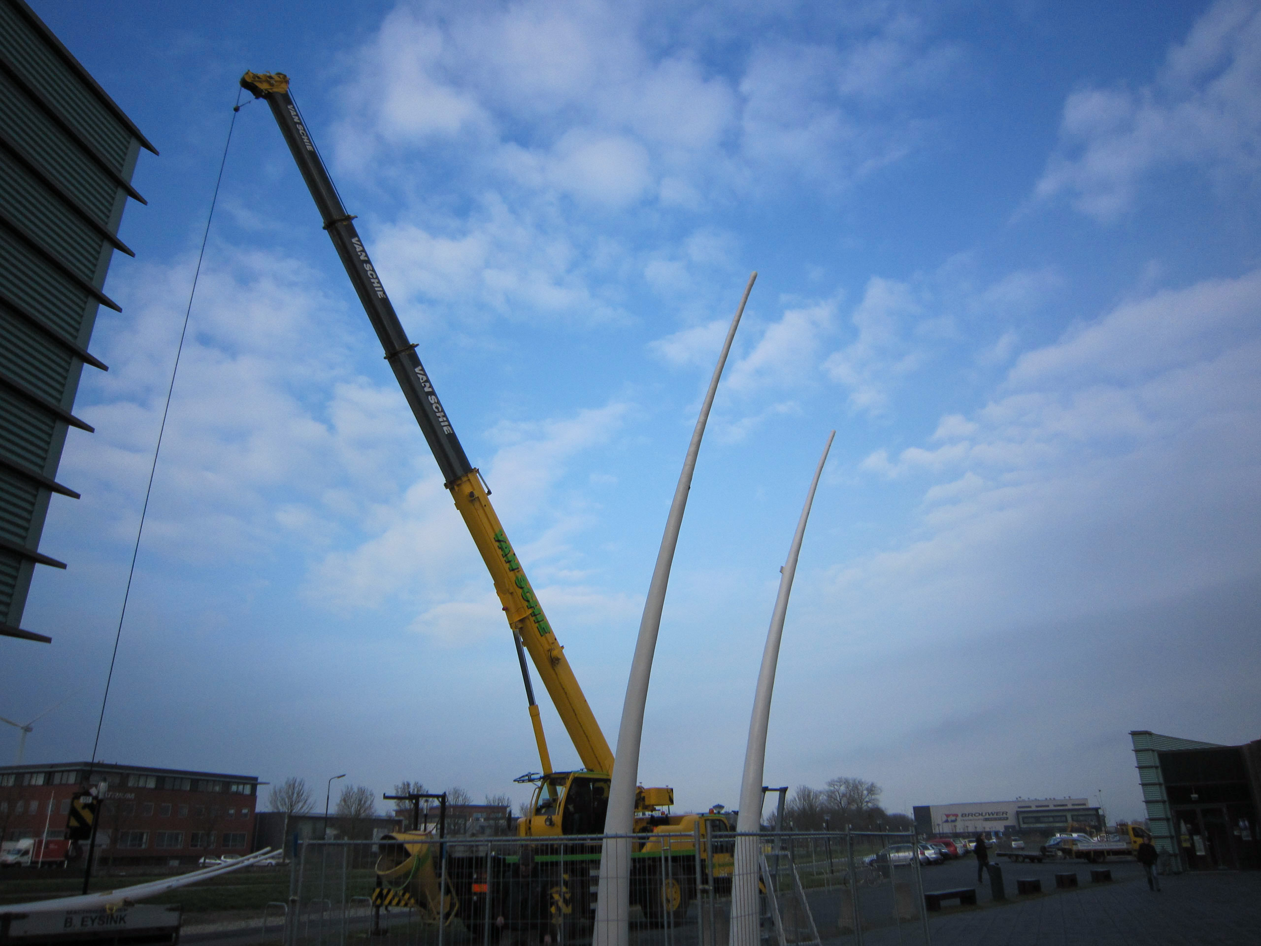 Dat is één van onze uitgangspunten. Omdat de architectuur zo aanwezig is vonden wij het belangrijk dat een kunstwerk zich hier van onderscheidt. Er moeten geen ‘twee liedjes door elkaar’ klinken. Ons beeld onderscheidt zich daarom met een autonome vormtaal. Een beeld dat te zien is