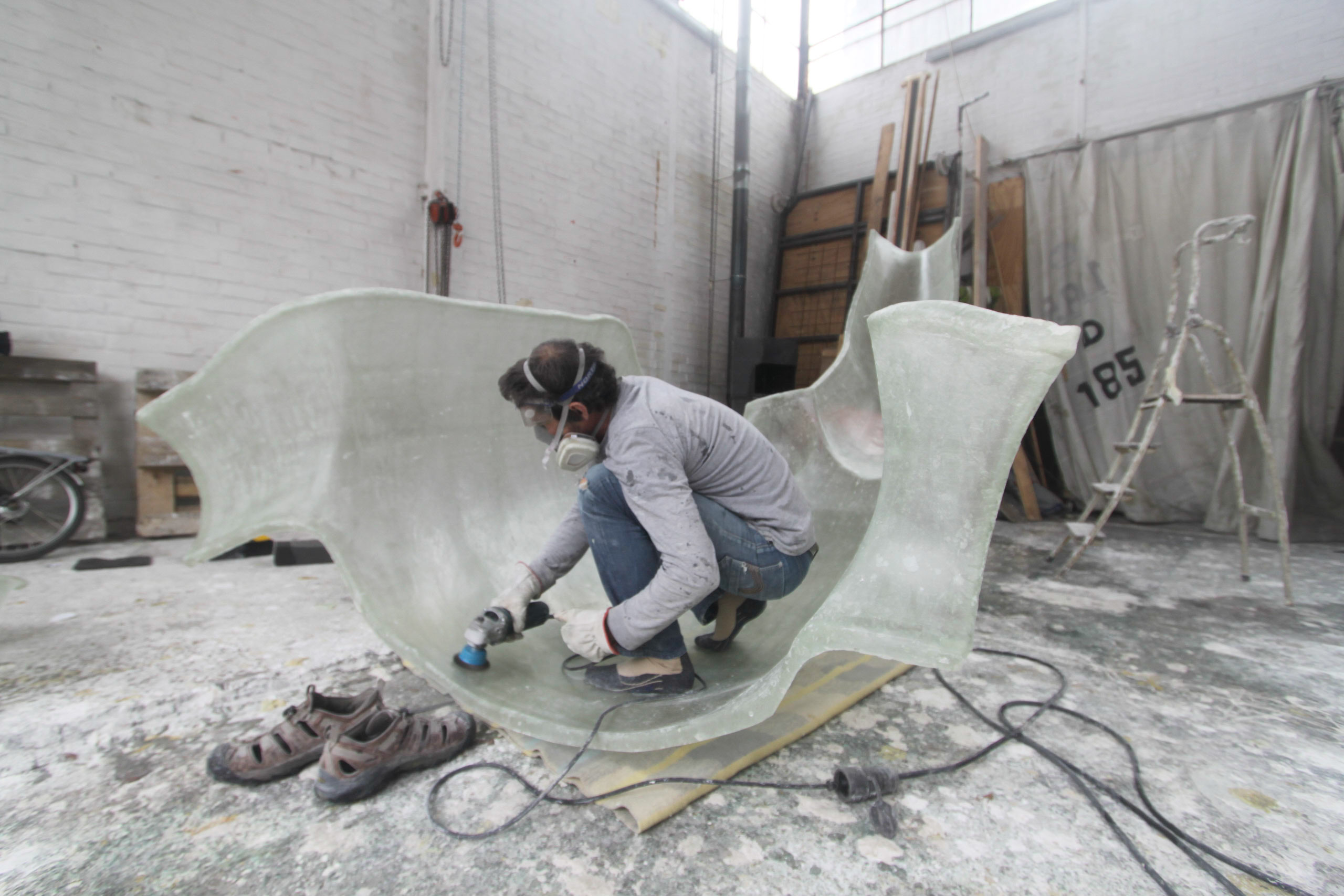 Het zwembad, ontworpen door architect Richard Benneker , bestond voor ons nog slechts op papier ,het is natuurlijk het gebouw zelf dat in belangrijke mate de opdracht beïnvloedt. Het is een karakteristiek gebouw, dat duidelijk op de voorgrond treedt. De opbouw van het gebouw maakt gebruik van grote vlakken in het bouwvolume met daarin een sterk aanwezige belijning en ritme. Daarbij wordt gebruik gemaakt van natuurlijke materialen.
