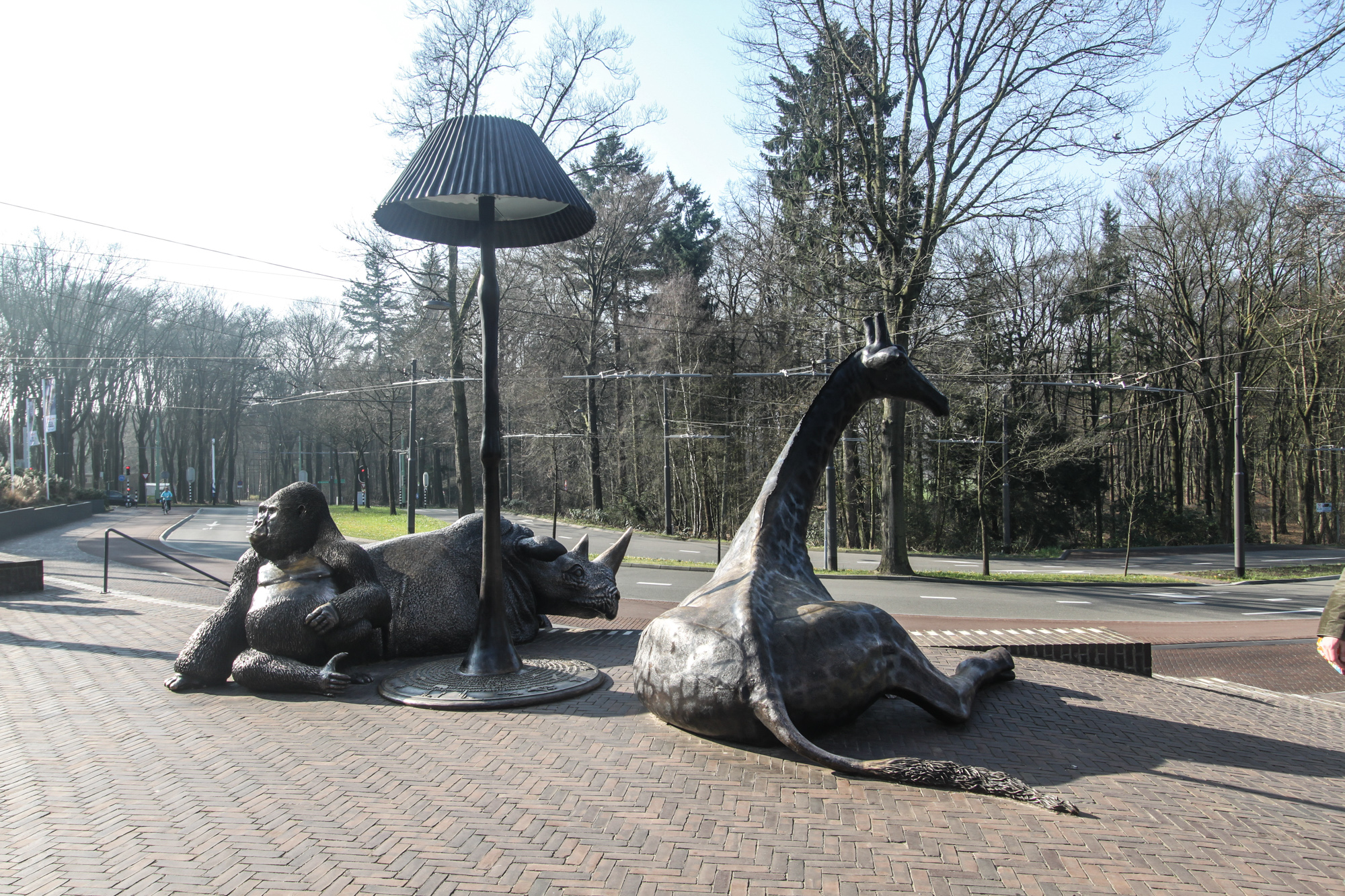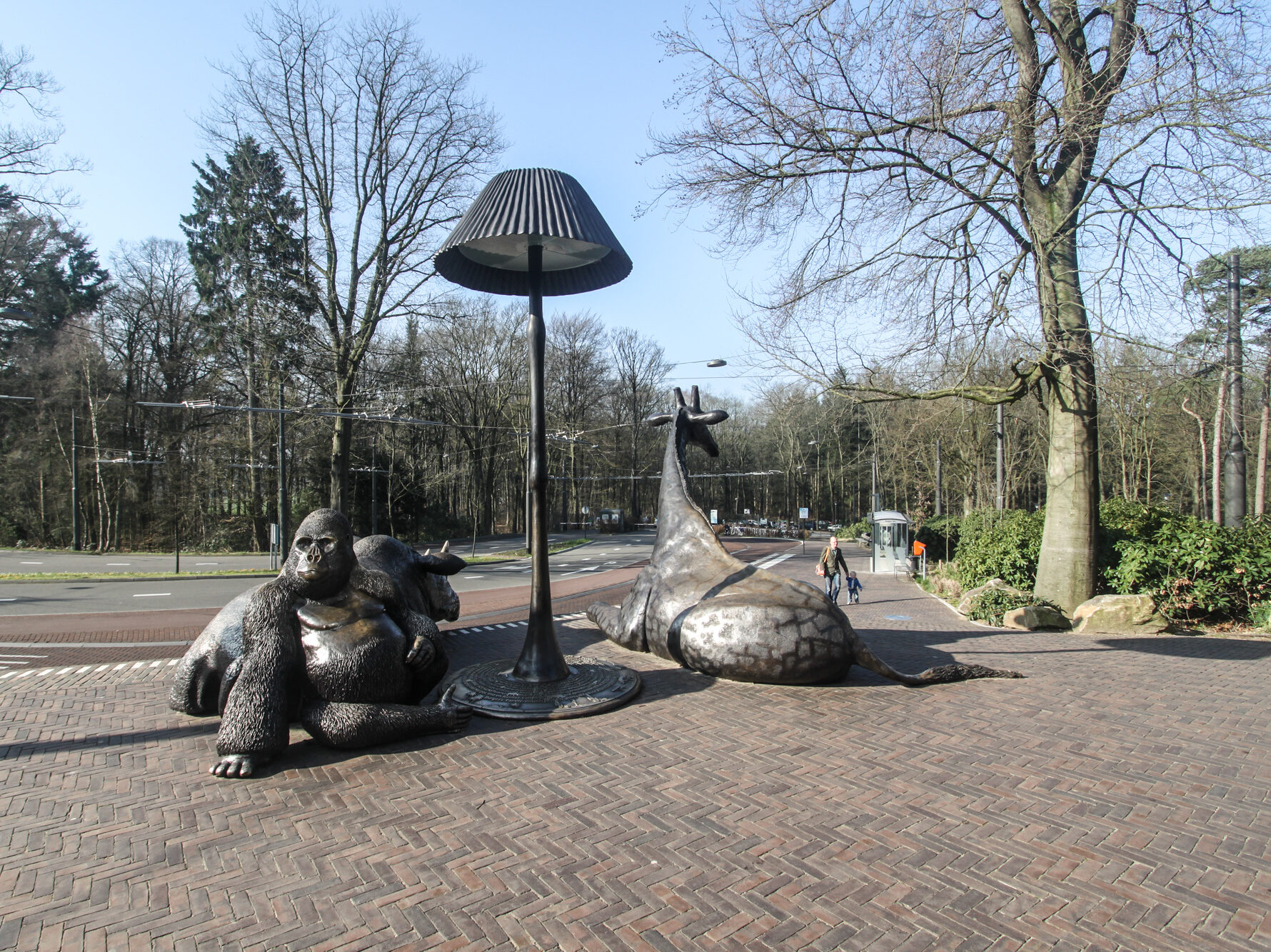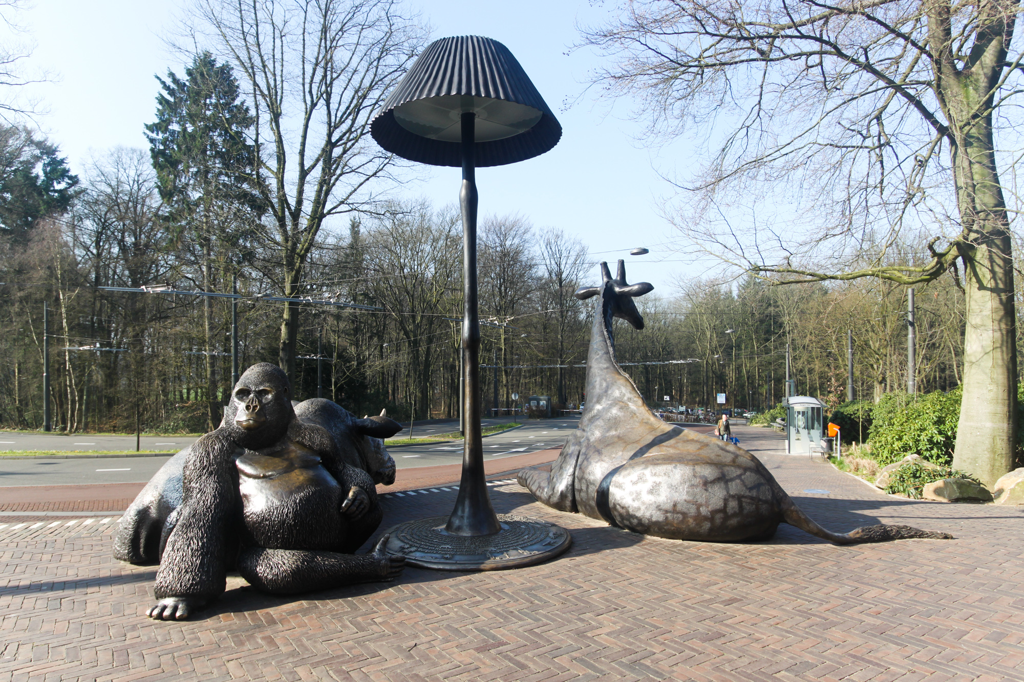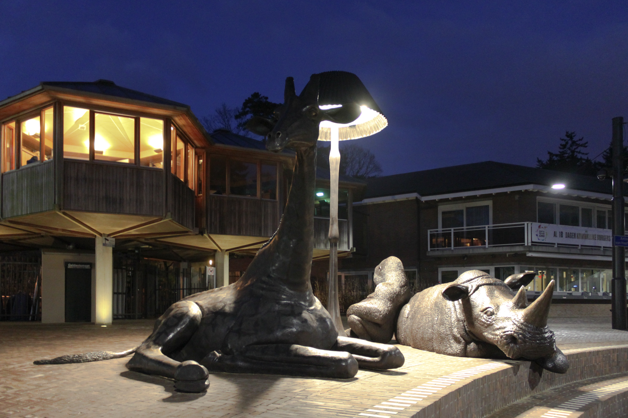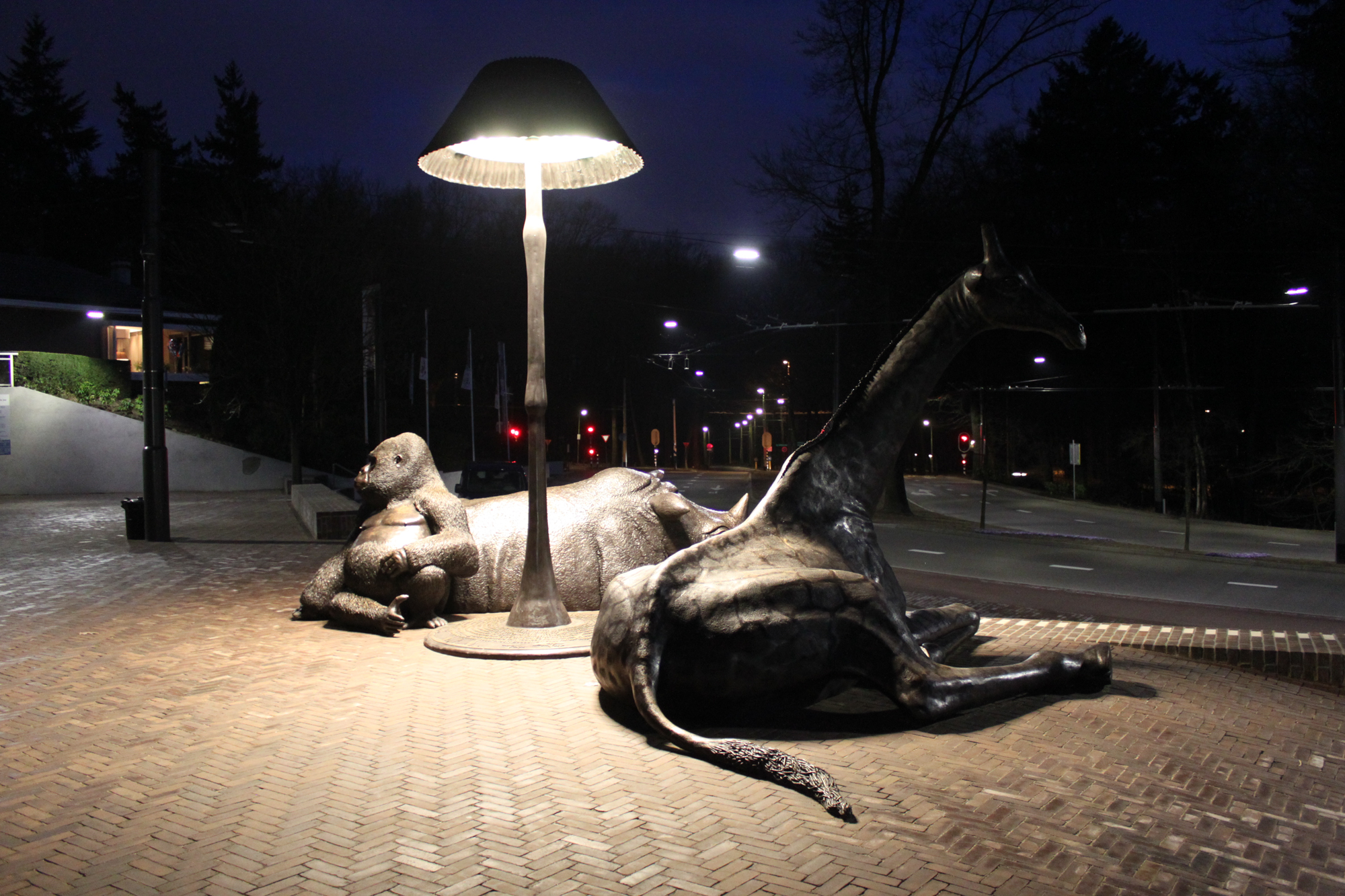 Het is een beeldengroep van drie dierfiguren; een giraffe, een neushoorn en een gorilla. De dierfiguren liggen/zitten bij en tegen elkaar. Zij zijn gegroepeerd aan de voet van een klassieke staande huiskamerlamp. Het is ook een functionerende lamp. De staande lamp lijkt een vreemd element in de enscenering, maar het is juist de lamp die als een verbindend element in deze setting fungeert. De dierfiguren scharen zich rond de lamp en worden erdoor ook echt in het licht gezet. Dat is in wezen ook het uitgangspunt van BurgersZoo; dieren als het ware in het licht zetten.