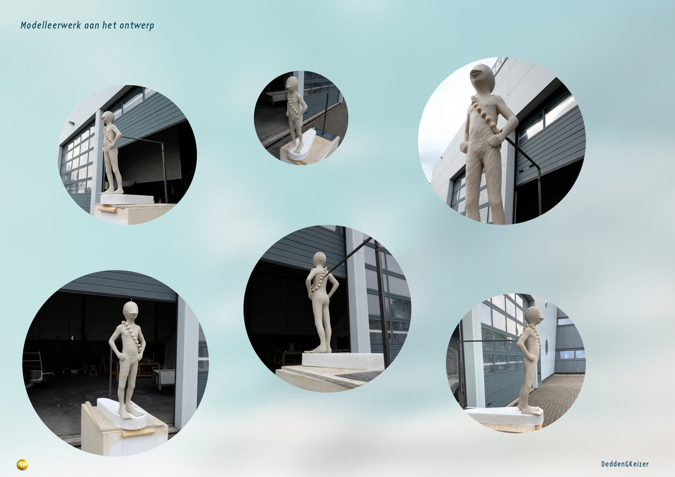 Wij zijn geneigd onze figuur als jongensachtig te zien, terwijl de sculptuur zich vooral ook androgyn toont. Wat we eigenlijk meer bedoelen is de trotse en zelfbewuste pose die er is. Een beetje brutaal, met lef en durf stelt onze figuur zich op de voorgrond, bereidt om uitdagingen aan te gaan. Kom maar op! Misschien voelt het de droom of de ambitie van de sportieve toekomst die het bij zich draagt. Goed beschouwd verbeelden wij hier misschien wel de ultieme zwemkampioen in spe. Jonge bezoekers van het zwembad worden ontvangen door dit beeld en hoe mooi is het als dit een beetje de opmaat kan zijn om een kampioensdroom te voeden. Tegelijk is dit beeld geen ode aan het musculaire atletische lichaam. Dat kan zeker nog komen, maar dit beeld gaat misschien wel meer over mentaliteit en zelfvertrouwen. Fysiek talent is één ding, maar iedere ware kampioen kan je vertellen dat het vertrouwen en bewustzijn in de kracht en mogelijkheden van het eigen lichaam en de mate waarin je daarmee verbonden bent, er minstens zo toe doet. Die uitstraling heeft deze figuur.