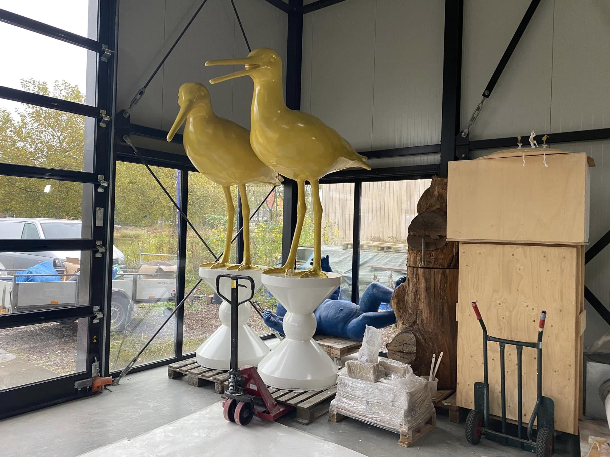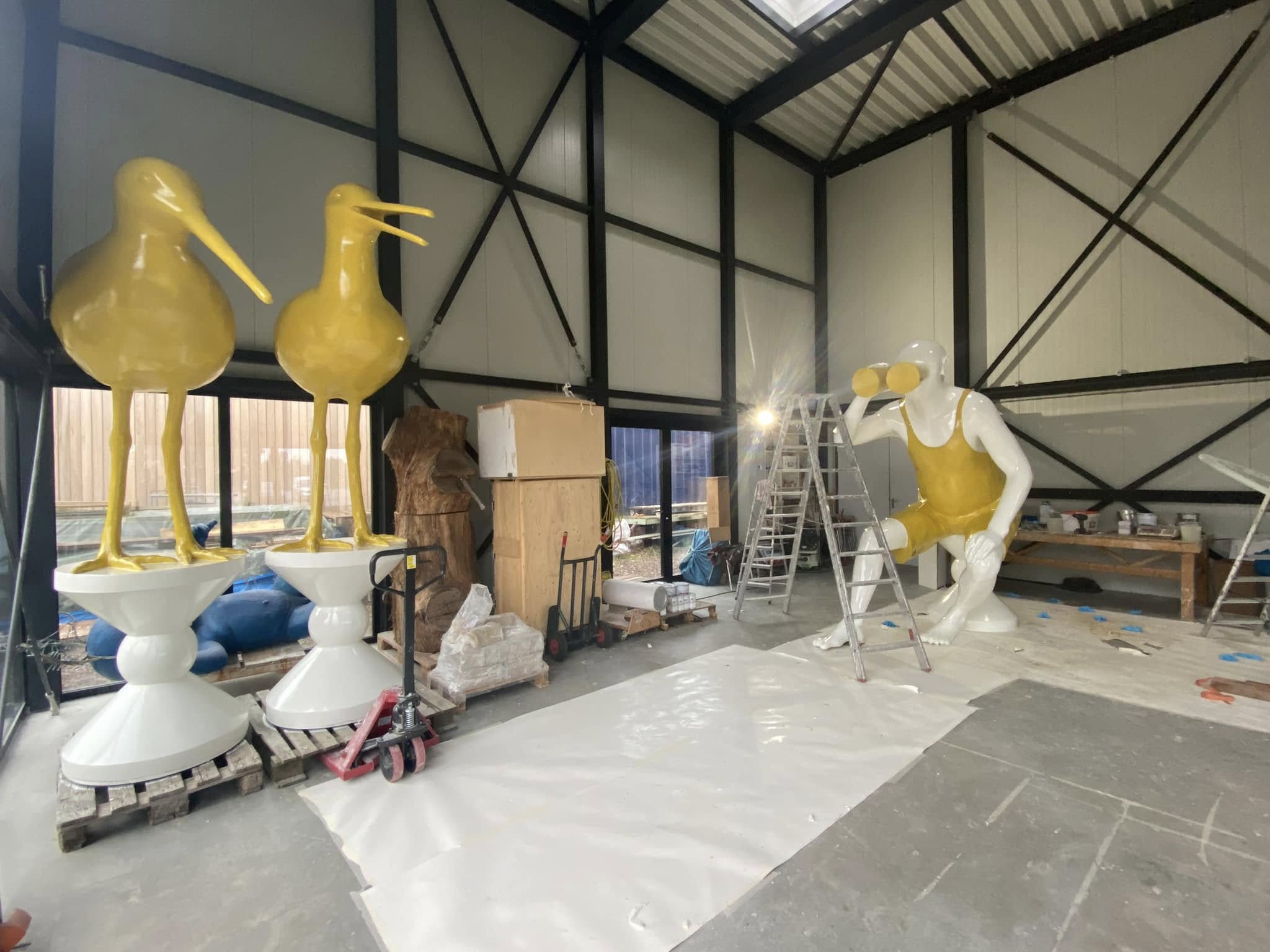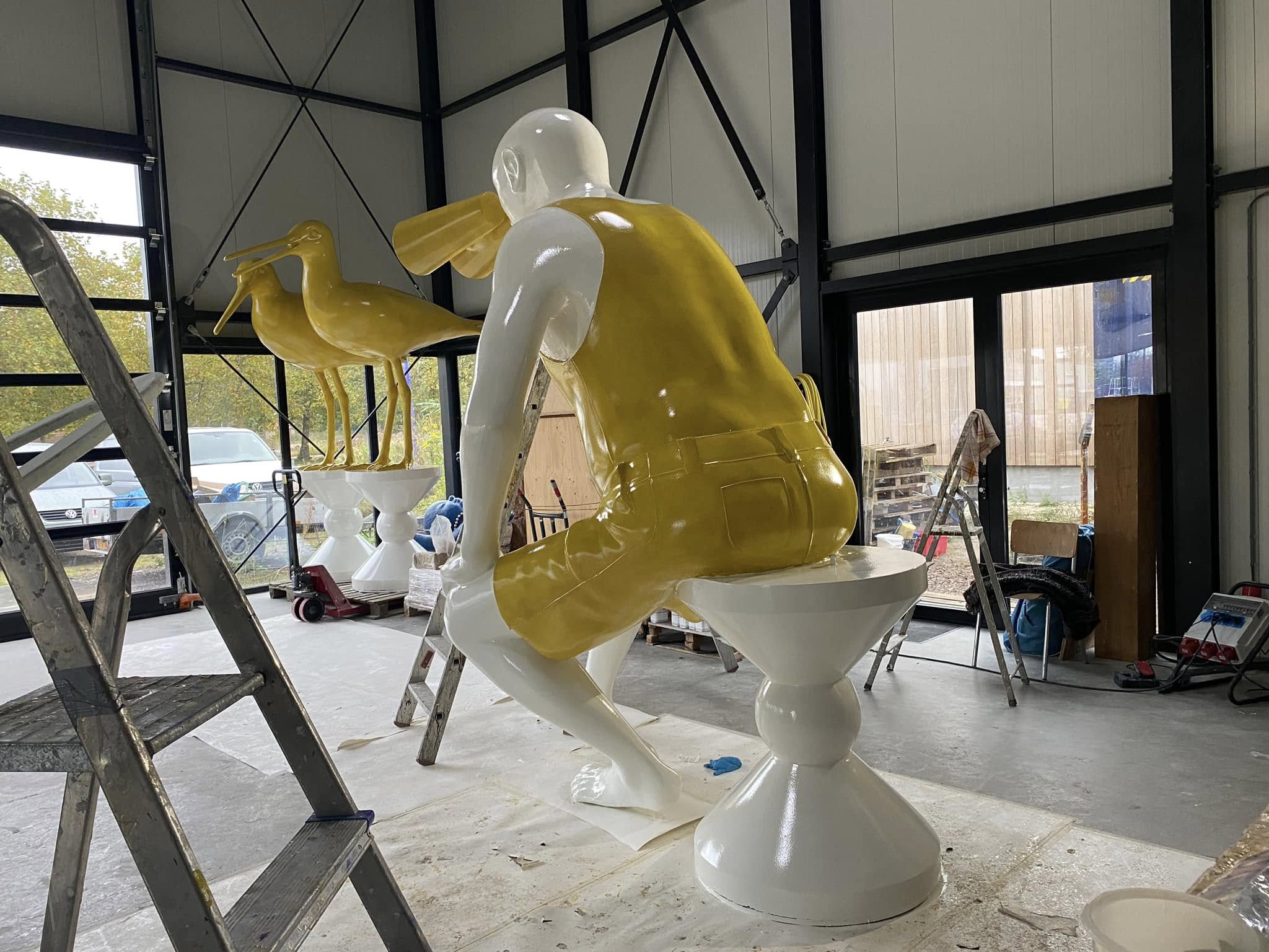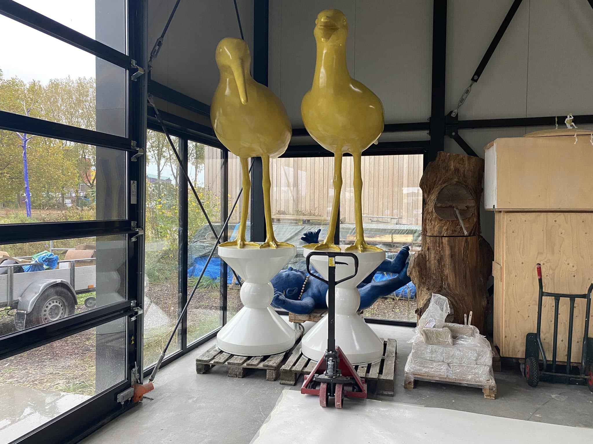 Omdat we nog net niet in slaap zijn gesukkeld aan de IJssel, hebben we nog wat tijd kunnen besteden aan wat kunst maken, tenslotte is zo’n overdaad aan natuur voor deur extreem schadelijk voor de creatieve mind en moet je je daar tegen verzetten met een flink potje beeldhouwen… bijna klaar voor plaatsing bij de polder…