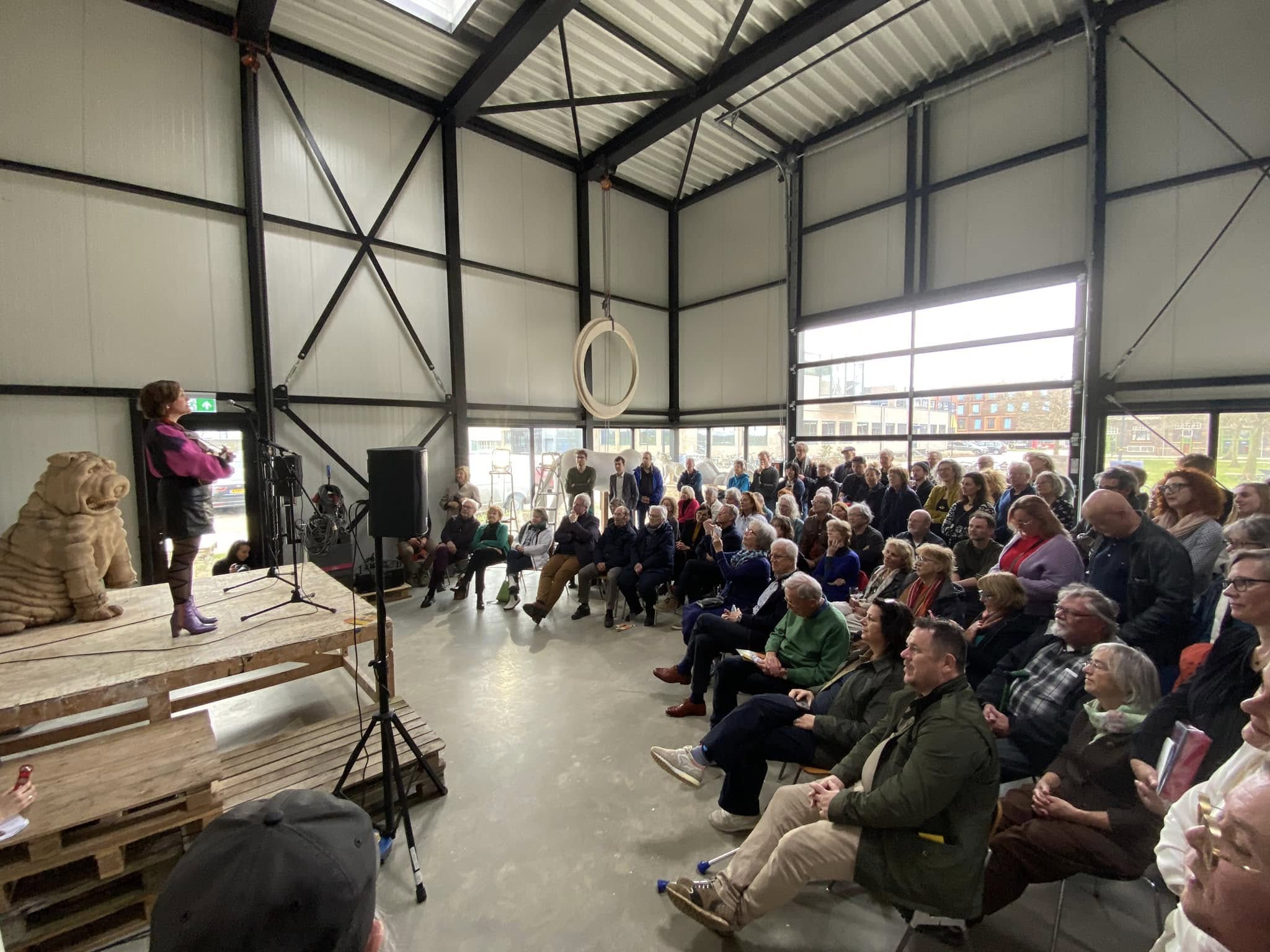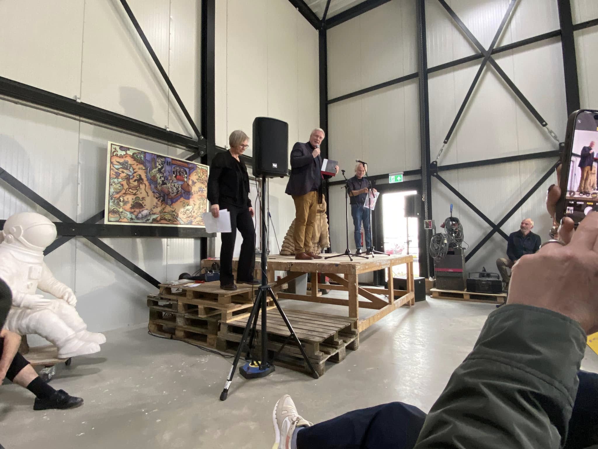 Volle bak bij de presentatie van het #Hanzeart boek en dd aftrap van de #deventerboekenweek…..organisator #martinknaapen loopt zich warm en #marcelherms checkt nog even of het bier al koud staat…
