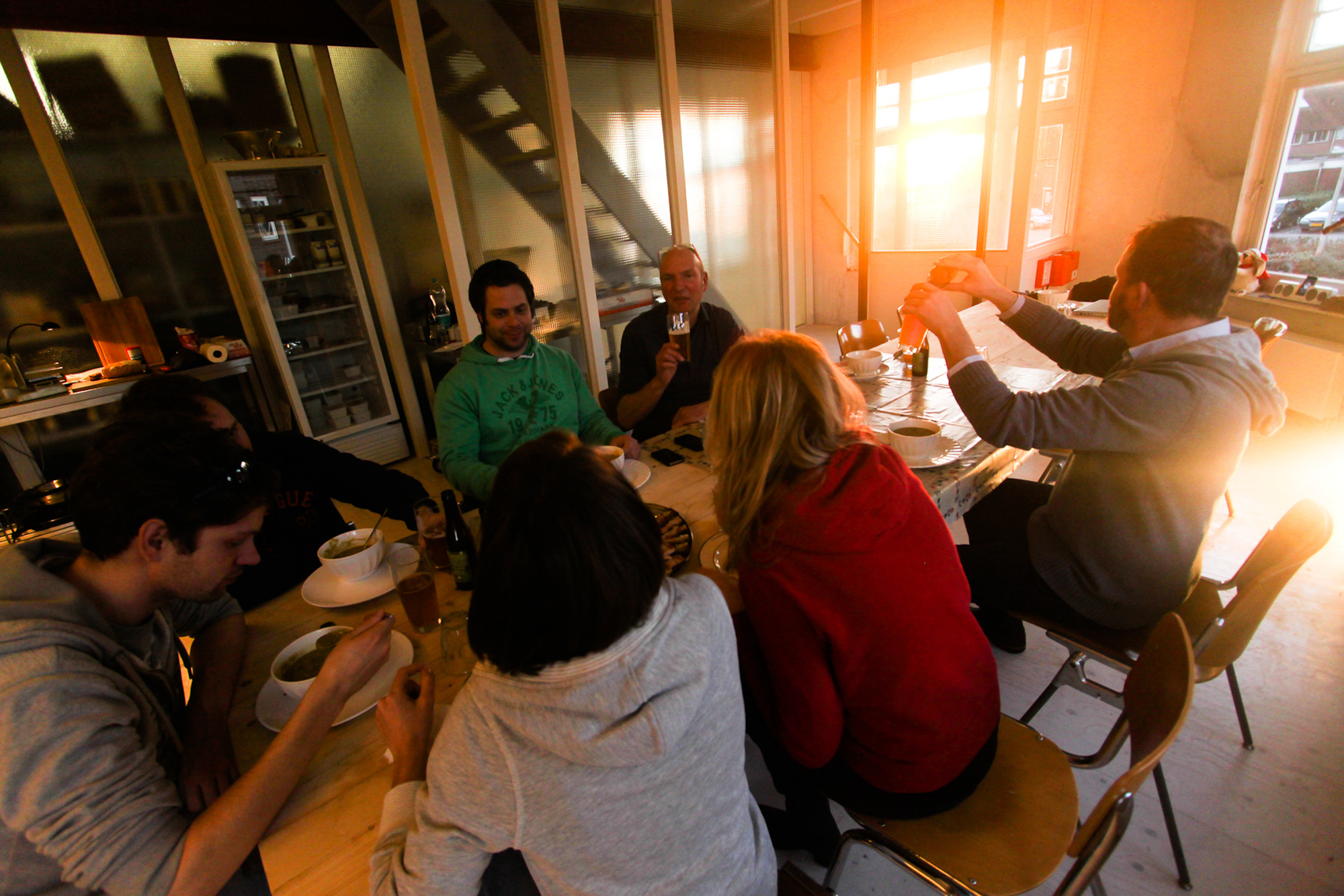 Zondag niet naar de kerk geweest , maar wel langs LucyLust Sn∅rt ! En het was een gezellige volle tafel afgelopen zondagmiddag zo tegen een uur of 16.00. Weliswaar niet echt snertweer gezien het prachtige zonnetje en een temperatuur van een graad of 9 , maar toch genoeg Sn∅rt & bierliefhebbers , die wel een DAVO Triple aandurfden aan de Space keukentafel . Hoewel we als koks niet zijn overlopen , moesten we toch regelmatig bijspringen om de vaat op tijd schoon te krijgen voor de nieuwe gasten . En dit vraagt om herhaling , waarschijnlijk op 5 april tijdens de open dag van Havenkwartier . U hoort van ons !